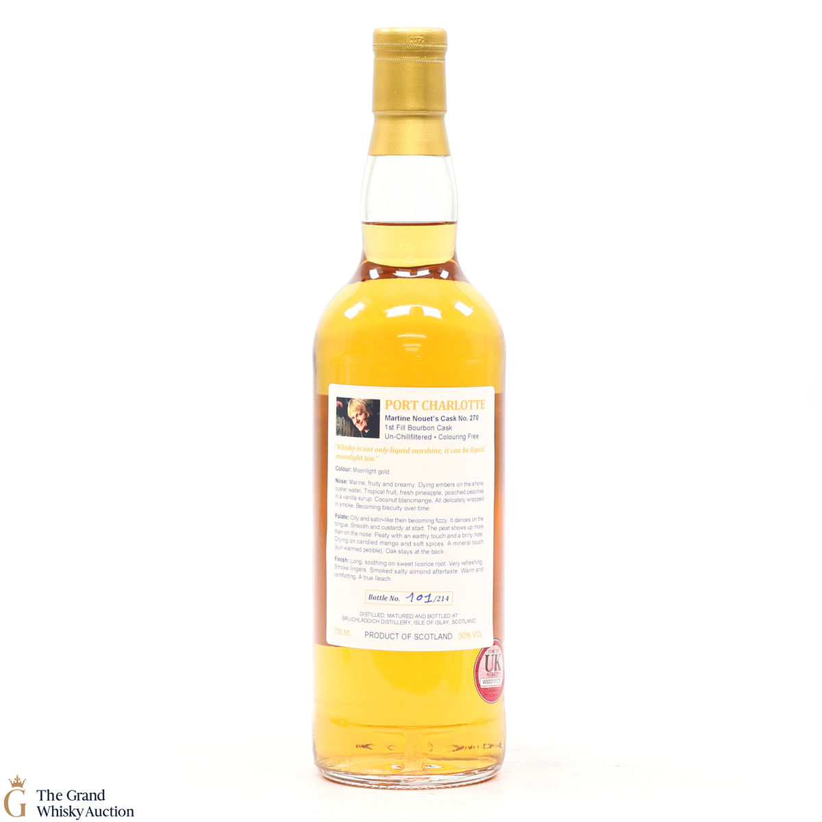 This Port Charlotte 15 Year Old was distilled in 2001 and matured in a 1st fill bourbon cask #270 until October 2016. A private bottling; The Queen of the Still Private Cask from Martine Nouet's cask #270. One of 214 bottles.