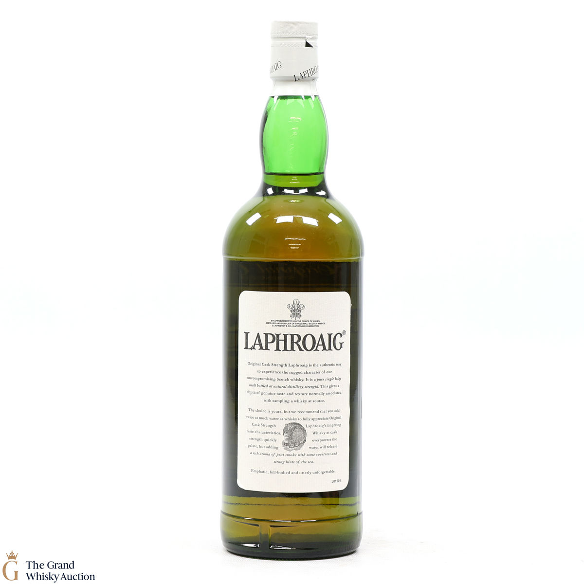 A 70cl cask strength bottle of the medicinal 10-year-old from Islay's bestselling distillery, Laphroaig. In making Laphroaig, malted barley is dried over a peat fire. The smoke from this peat, found only on Islay, gives Laphroaig its particularly rich flavour.