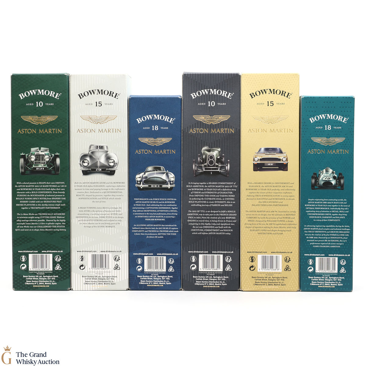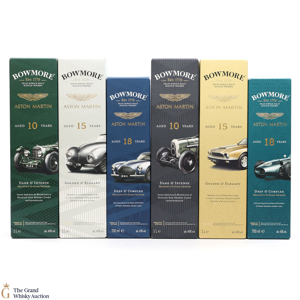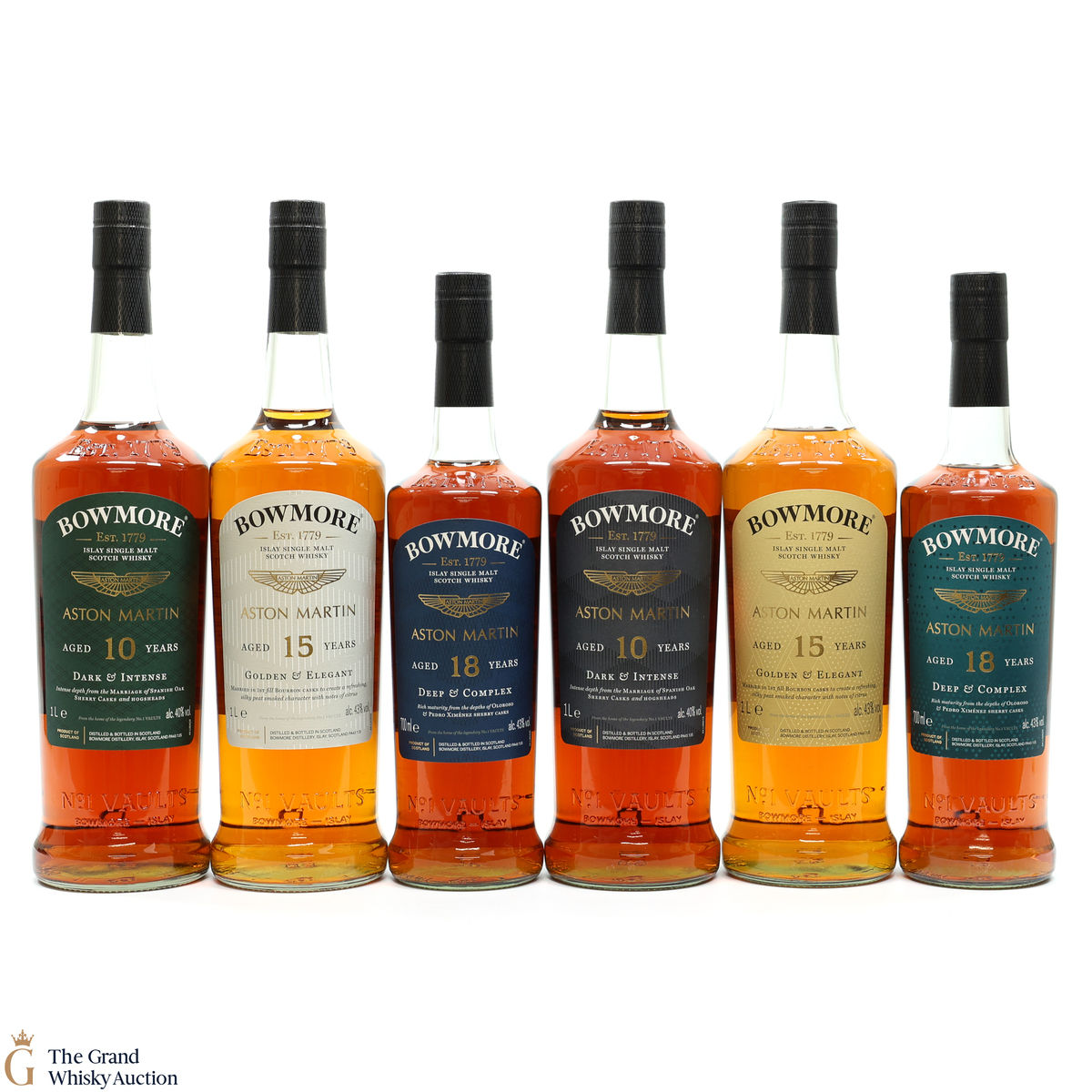 Bowmore and Aston Martin, both create timeless beauty and a lasting legacy. Each edition of the Aston Martin collection features a different car. Included in this lot is Edition 1,2,3,4,5 & 6: (4 x 1L, 2 x 70cl bottles)