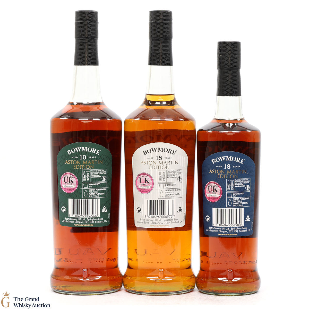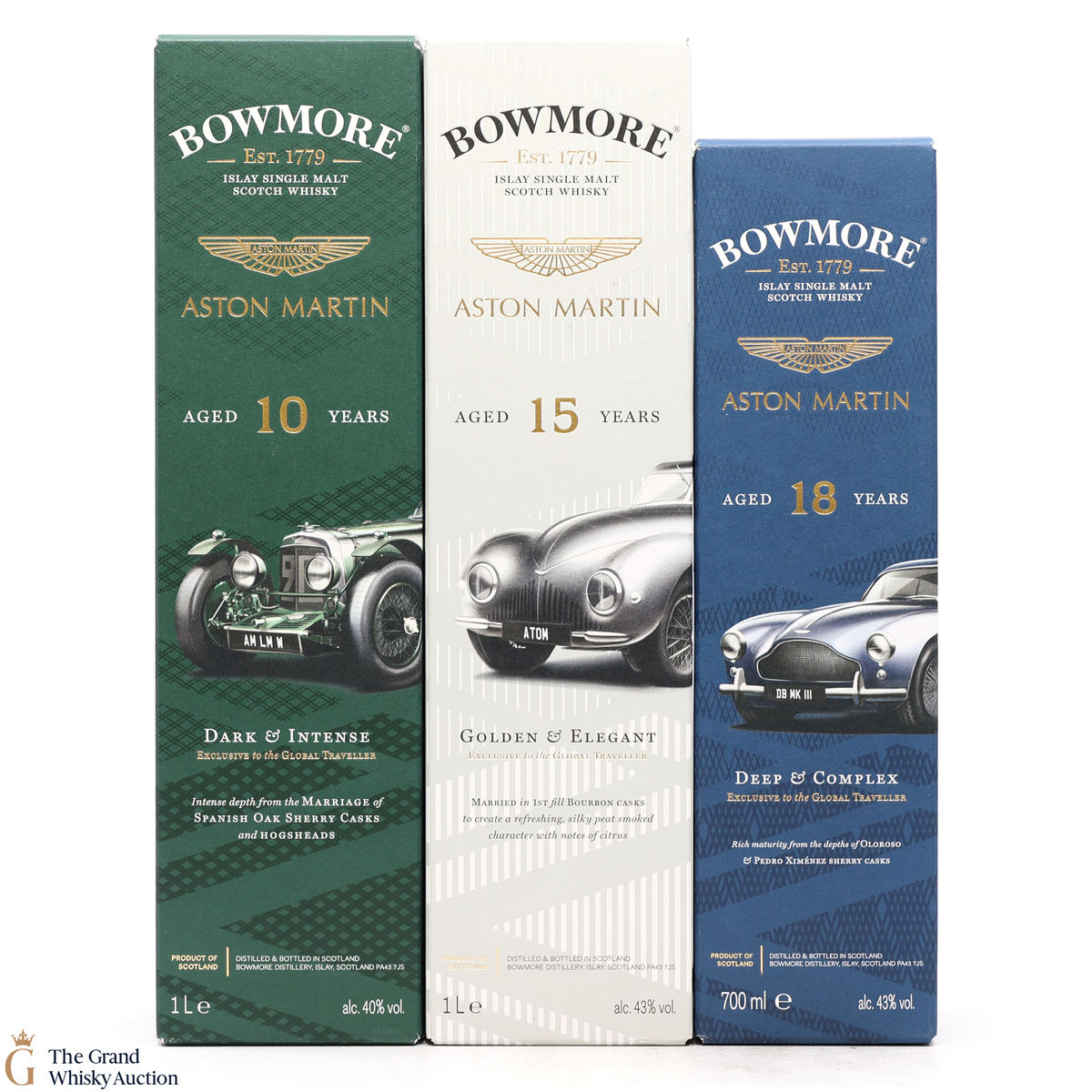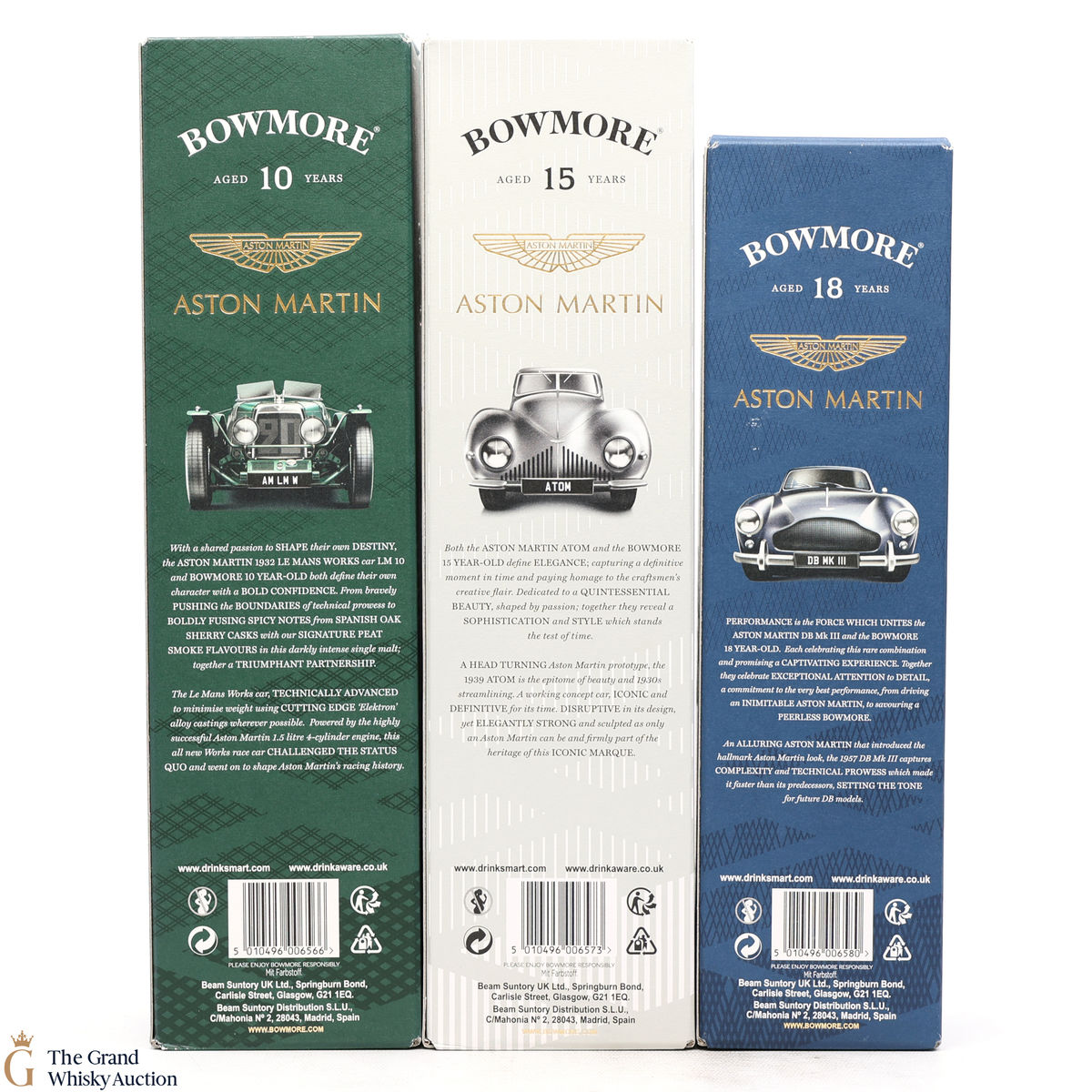 A collaboration between Bowmore and Aston Martin, both creating timeless beauty and a lasting legacy. Each edition of the Aston Martin collection features a different car. Included in this lot is edition 1, 2 and 3: