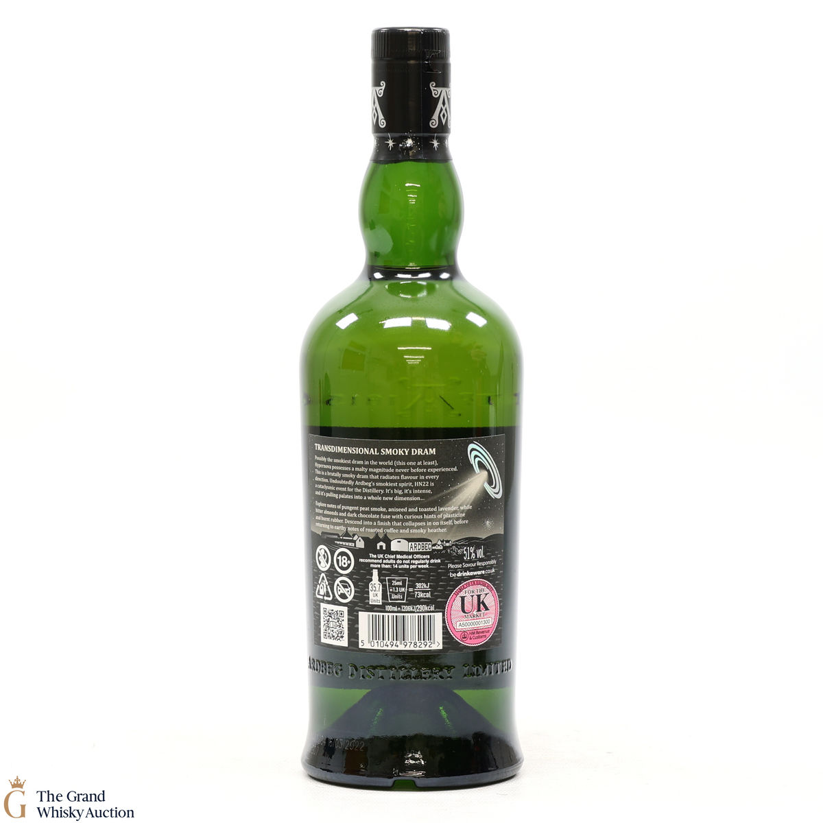 This transdimensional smoky dram was exclusively released to Ardbeg Committee members in October 2022, this is undoubtebly Ardbeg's most heavily peated whisky to date and possibly the smokiest dram in the world. Radiating flavour in every direction, HN22 is brutally smoky and intense.