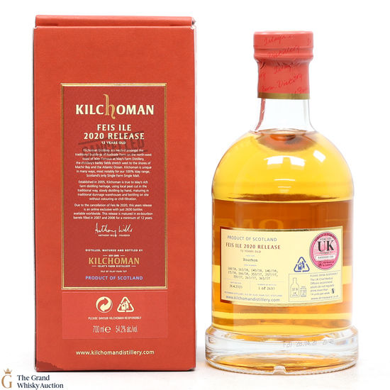 Due to the cancellation of Fèis Ìle 2020, this year's Kilchoman festival release was an online exclusive and is one of just 2630 bottles available. Matured in ex-bourbon barrels for a minimum of 12 years and bottled at the cask strength (54.2%).