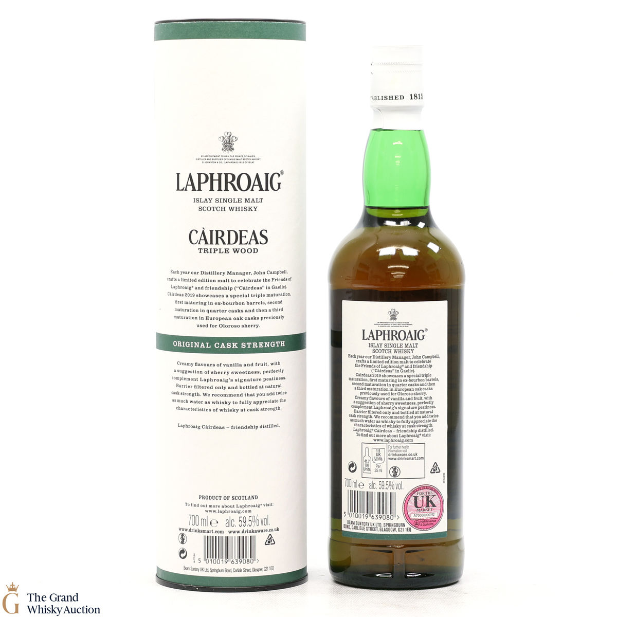 Cairdeas, Gaelic for 'friendship', is an annual bottle release by Laphroaig for their Friends of Laphroaig members. This Càirdeas Triple Wood Cask Strength was released for Fèis Ìle 2019. It has had a special triple maturation; first matured in ex-bourbon barrels, then in quarter casks and finally in European oak casks which previously held oloroso sherry.