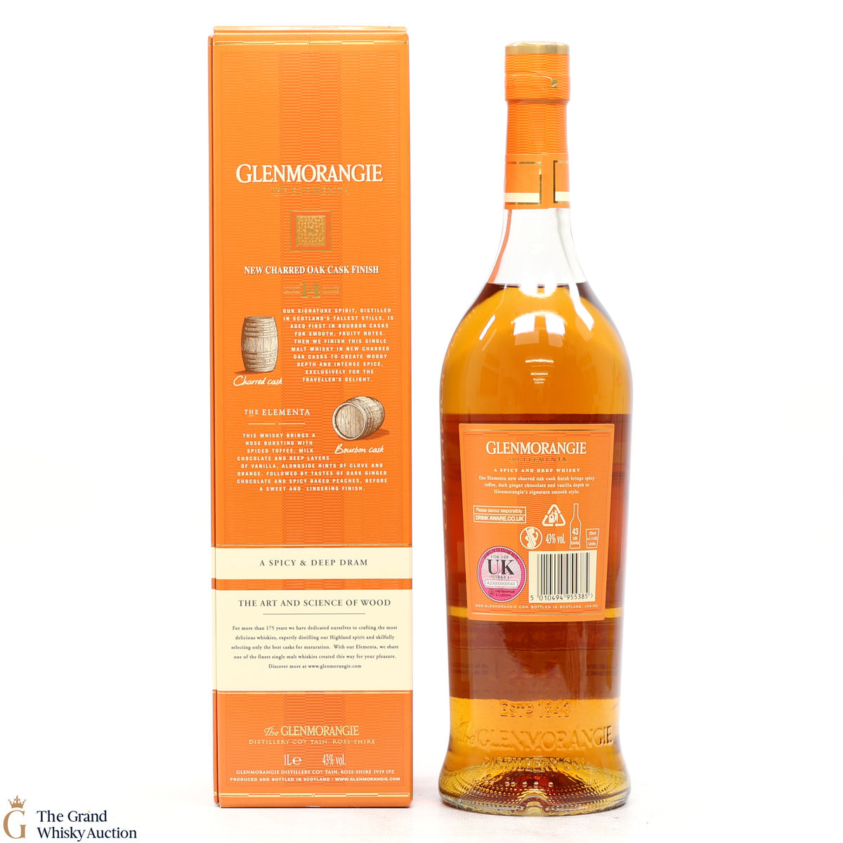 This spicy and deep Elementa celebrates Glenmornagie's skills in wood finishing, an art which brings new depths of flavour to their whisky. Matured initially in American oak bourbon casks to create smoothness and fruity notes and finished in charred oak casks, bringing forth a 14-year-old whisky of woody depth and intense spice. Available exclusively in travel retail.