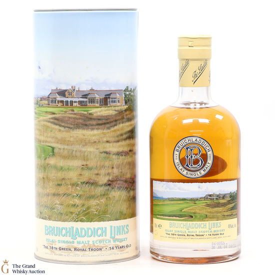 This bottling was released as part of the Bruichladdich Links collection. This 18-year-old single malt depicts Royal Troon, the 18th Green.