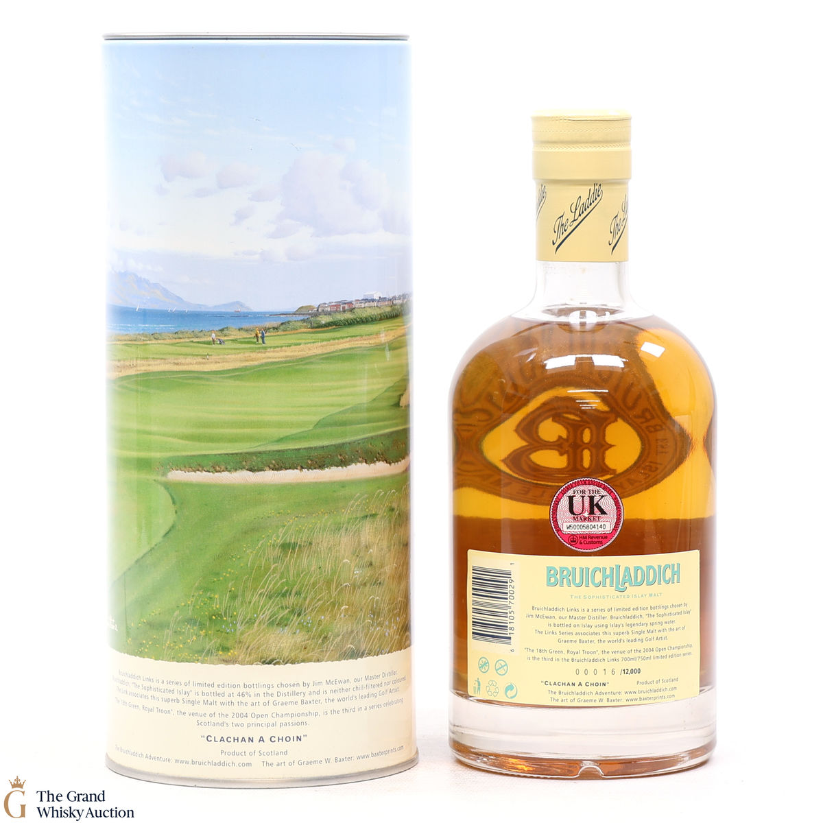 This bottling was released as part of the Bruichladdich Links collection. This 18-year-old single malt depicts Royal Troon, the 18th Green.