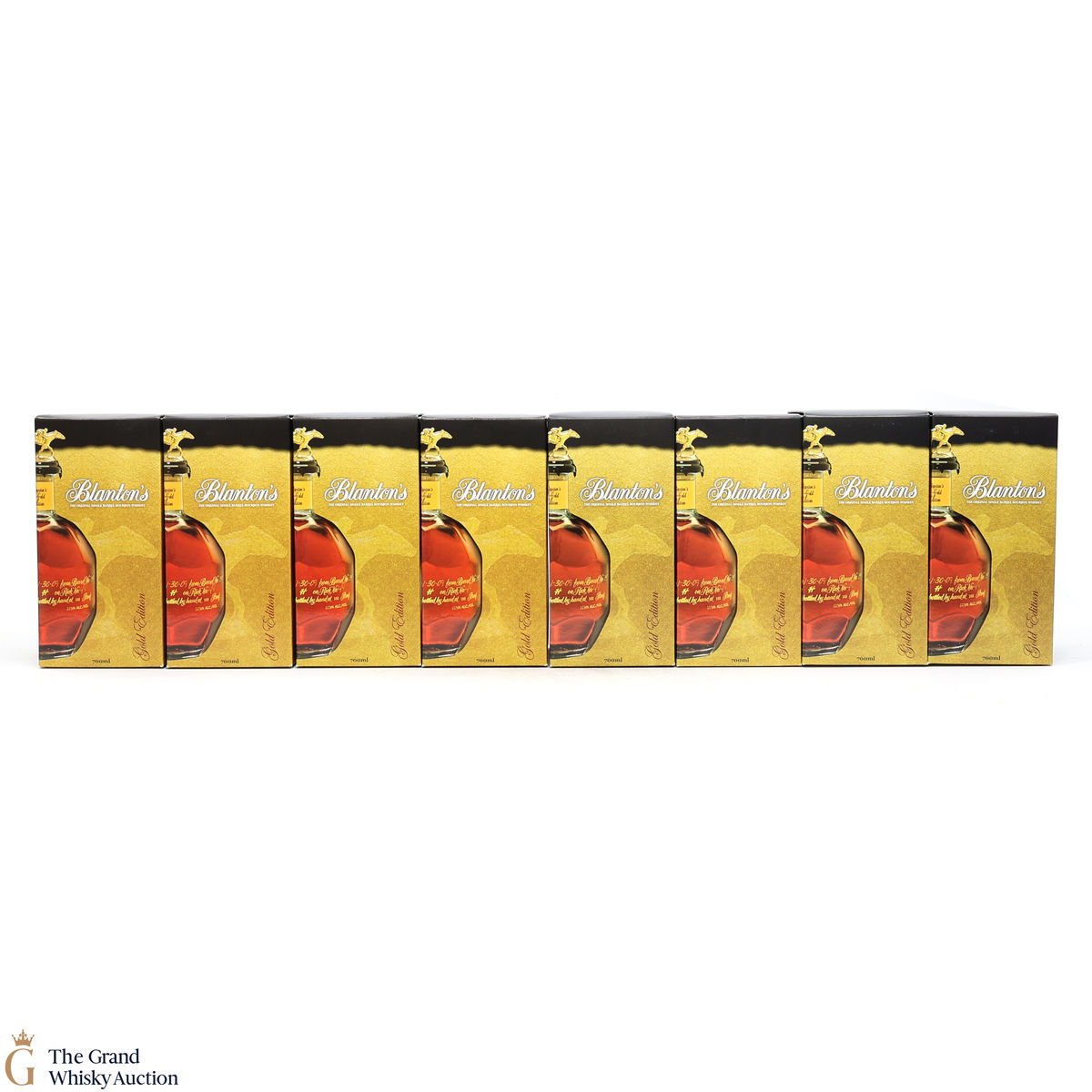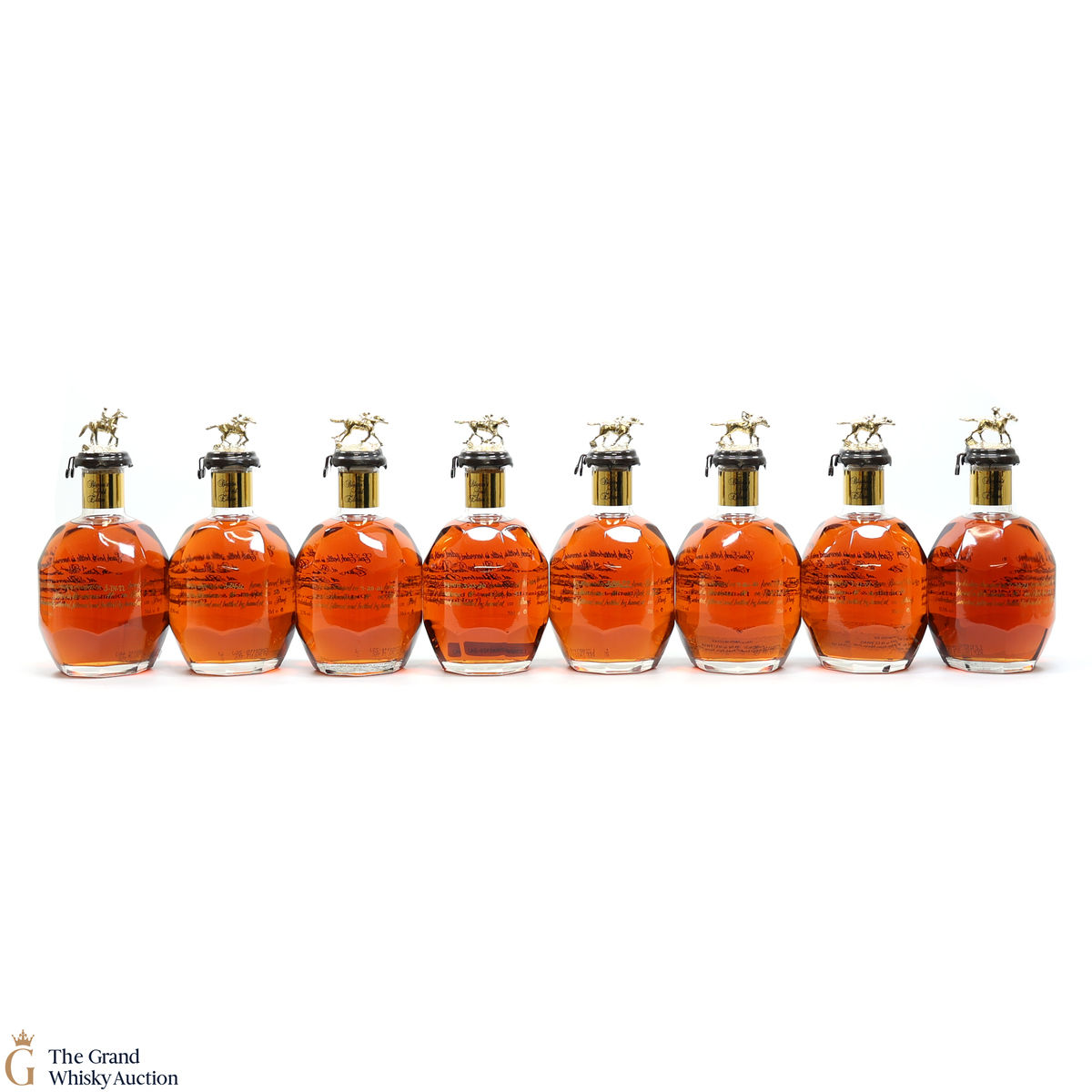This lot includes 8 x 70cl bottles, the complete stopper collection spelling out "Blantons".