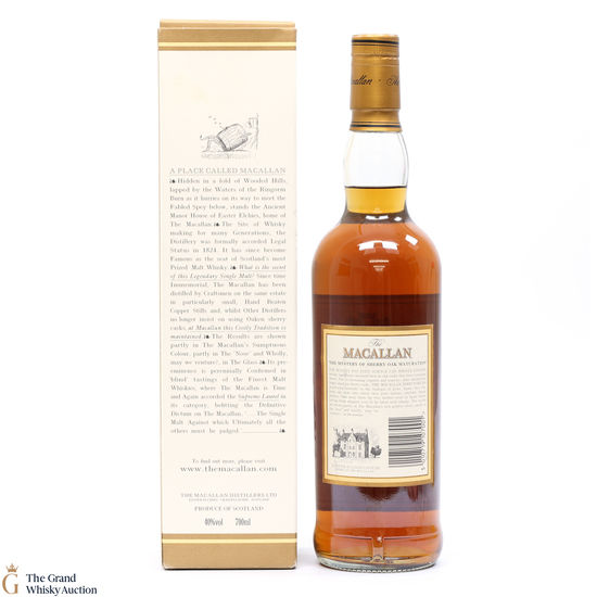This is an old-style presentation of Macallan 10 Year old was bottled in the 1990's. This classic Speyside malt whisky matured in sherry oak casks from Jerez. Very collectable.