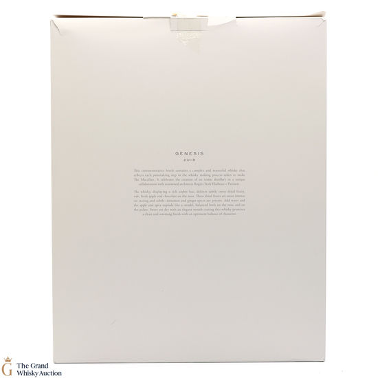 The Macallan Genesis Limited Edition marks the creation of the iconic Distillery in a unique collaboration with internationally acclaimed architects Rogers Stirk Harbour + Partners. Released in August 2018, the special edition bottling commemorates the unveiling of the brand new Macallan Distillery which opened in June 2018.