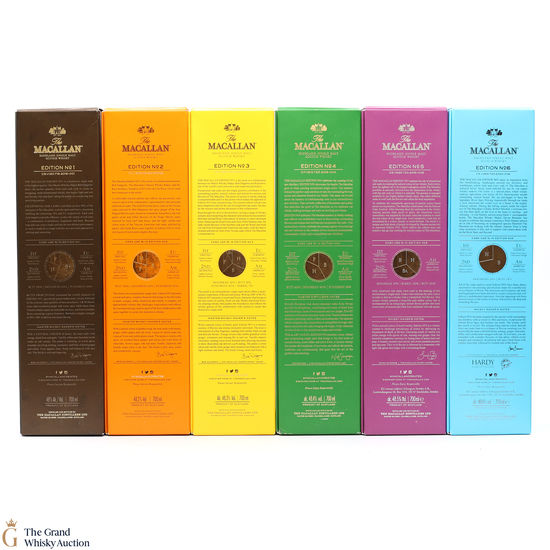This lot brings together the Macallan Edition set to date, comprising of Edition no. 1, 2, 3 4, 5 & 6 in the annual limited edition series.