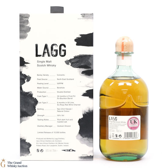 This is one of three inaugural releases from the Lagg Distillery in Arran. This is a heavily peated dram matured in an ex-red wine charred cask before being bottled in 2022.