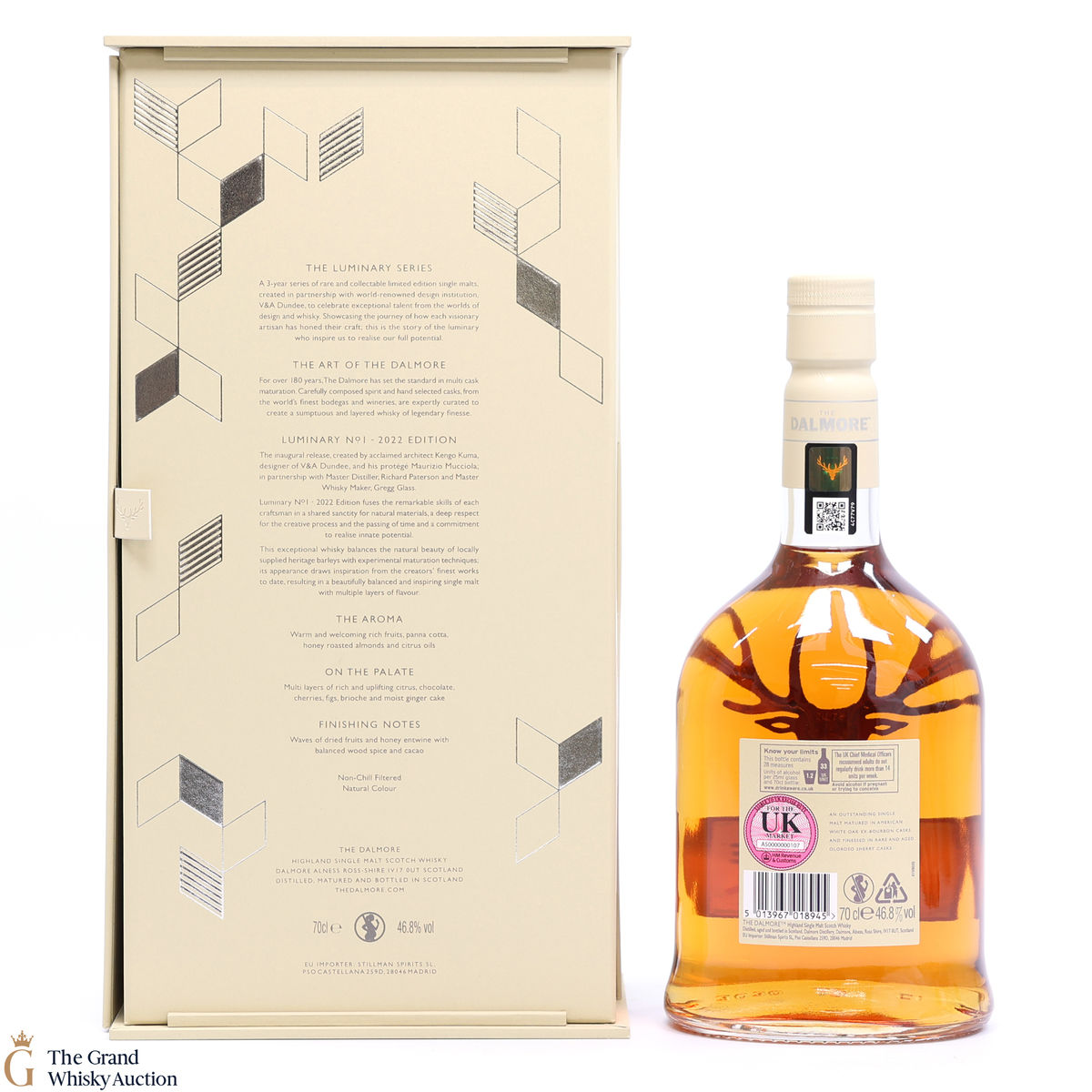 Dalmore is working with architect Kengo Kuma and protégé Maurizio Mucciola to create this single malt. This single malt has spent a total of 15 years ageing in both Italian Amarone red wine casks, virgin "Kintsugi" casks from the Tay and finally Japanese and American white oak before.