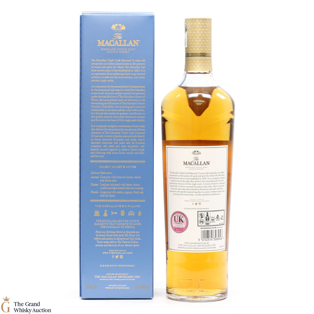 The 12 year old single malt was matured for 12 years and drawn from a combination of European sherry seasoned casks, American sherry seasoned casks and American ex-bourbon casks. It is part of Macallan's Triple Cask range which was launched in 2018, taking the place of the Fine Oak range.