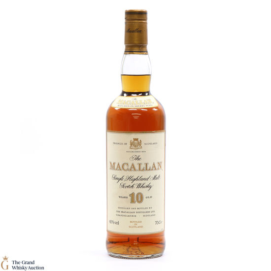 This is an old-style presentation of Macallan 10 Year old was bottled in the 1990's. This classic Speyside malt whisky matured in sherry oak casks from Jerez. Very collectable.