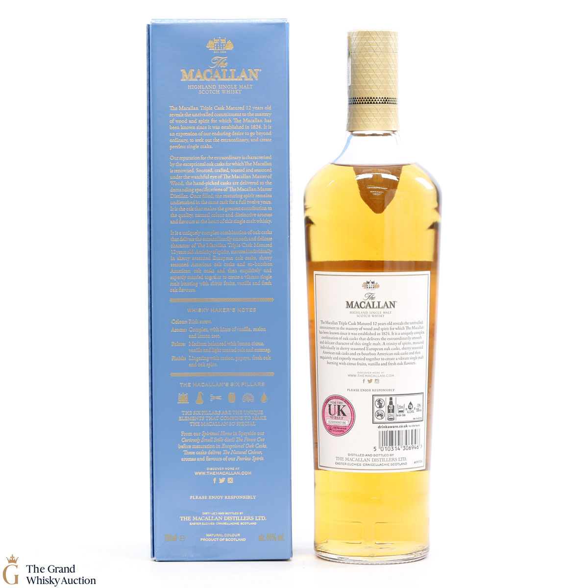 The 12 year old single malt was matured for 12 years and drawn from a combination of European sherry seasoned casks, American sherry seasoned casks and American ex-bourbon casks. It is part of Macallan's Triple Cask range which was launched in 2018, taking the place of the Fine Oak range.