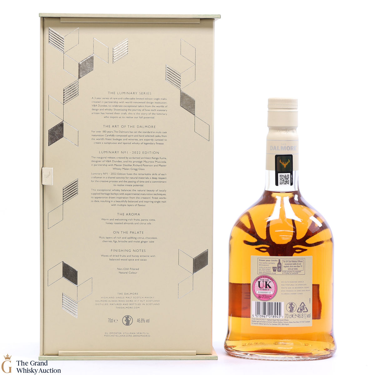 Dalmore is working with architect Kengo Kuma and protégé Maurizio Mucciola to create this single malt. This single malt has spent a total of 15 years ageing in both Italian Amarone red wine casks, virgin "Kintsugi" casks from the Tay and finally Japanese and American white oak before.