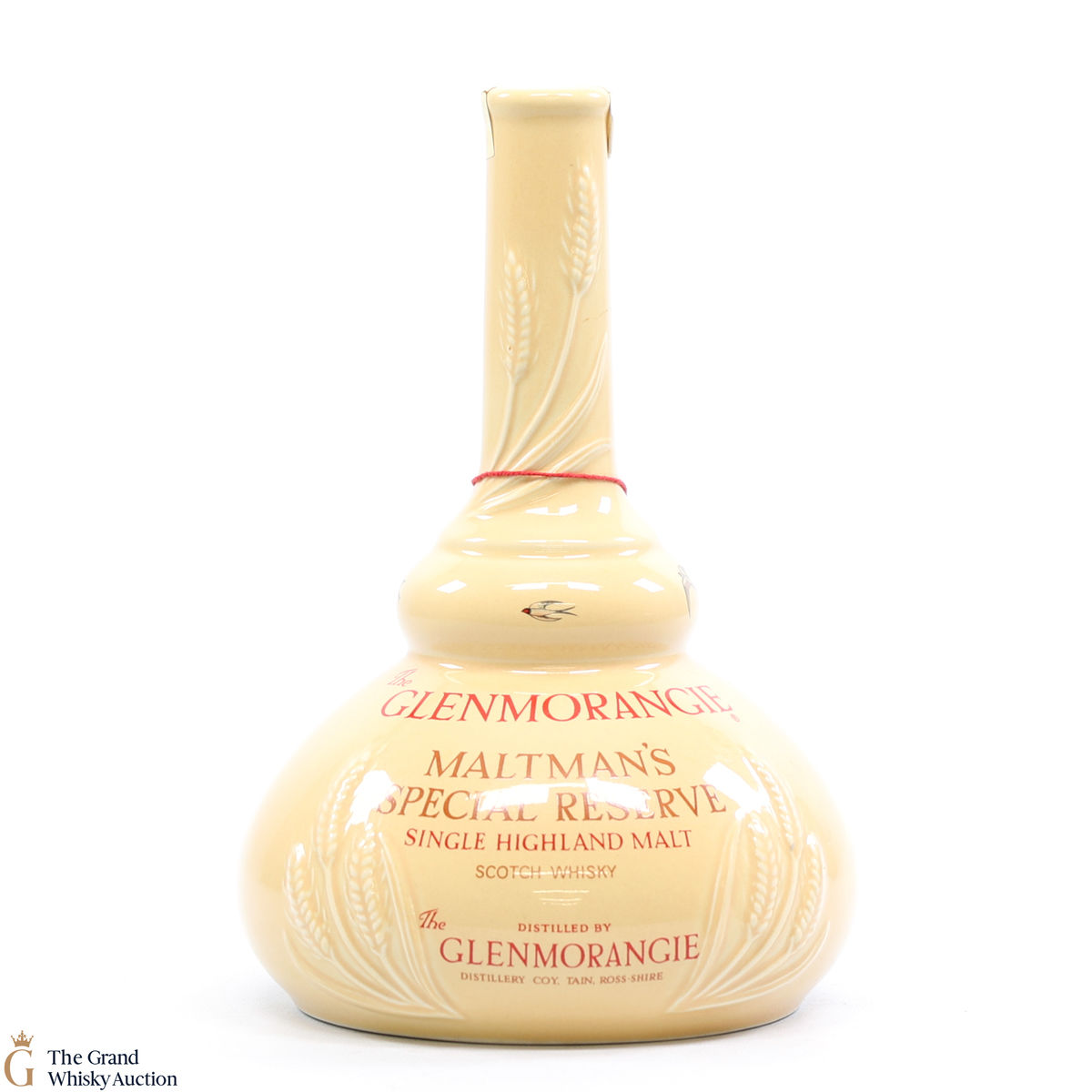 A Maltman's Special Reserve, a single malt distilled in Glenmorangie's famously tall copper pot stills. Matured in oak casks for 18 years before being bottled in a ceramic decanter hand-crafted by Crown Staffordshire to resemble the Glenmorangie stills.