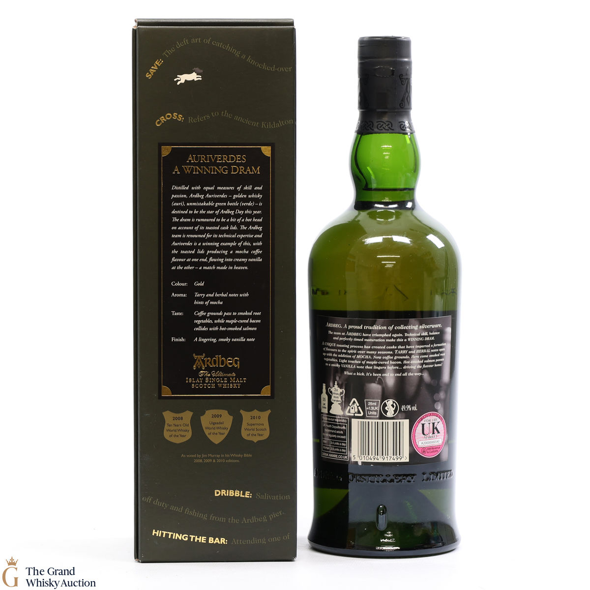 This special edition Ardbeg single malt was released on Ardbeg Day 2014 during Feis Ile. Auri(Gold) Verdes (Green) it refers to the golden whisky and the iconic Ardbeg green bottle of Ardbeg whisky. It is said to be a dram of two halves - the whisky uses toasted cask lids to create Mocha Coffee flavours that team up with creamy vanilla.