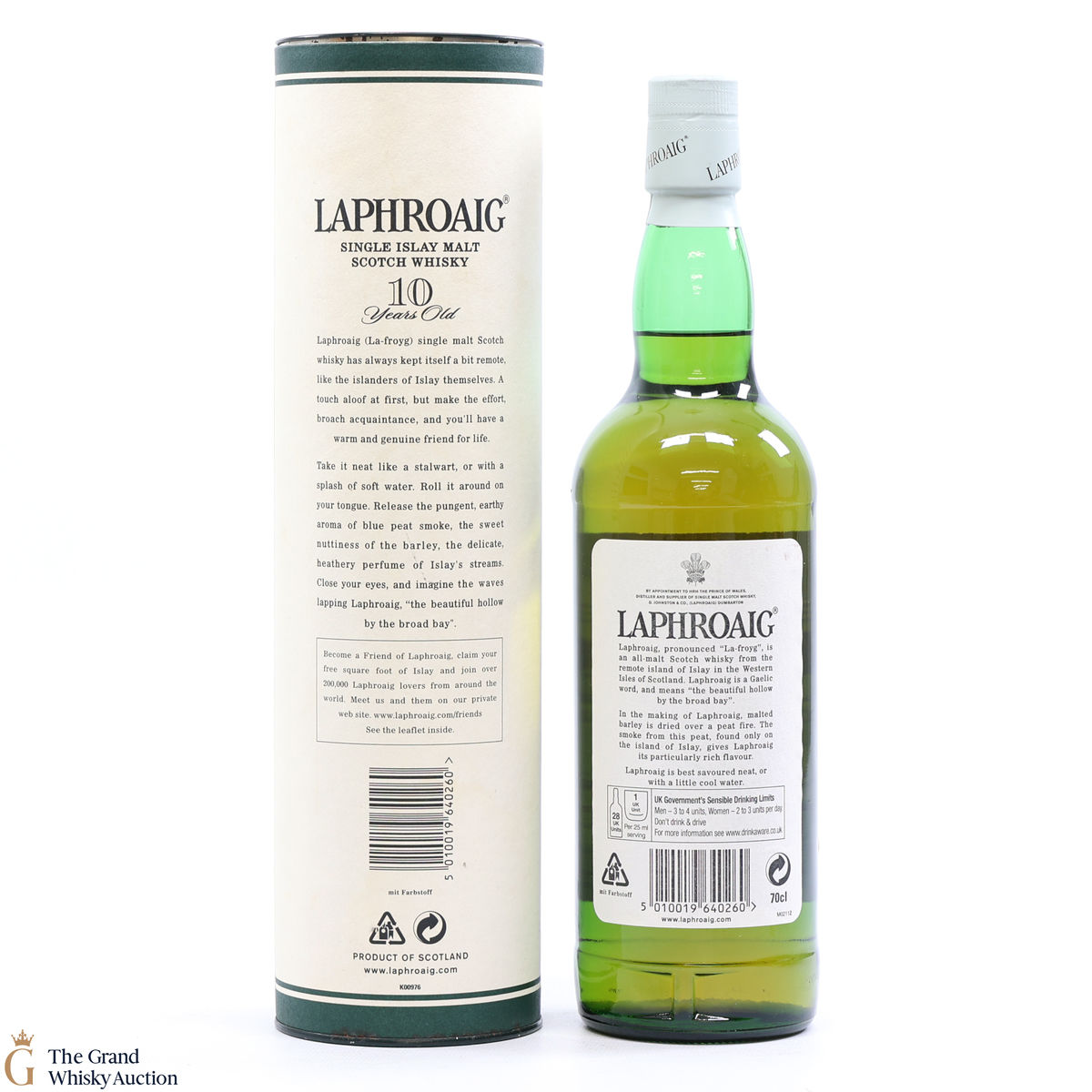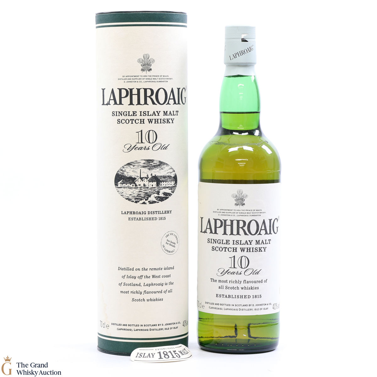 A 70cl of the medicinal 10 year old from Islay's bestselling distillery, Laphroaig. In making Laphroaig, malted barley is dried over a peat fire. The smoke from this peat, found only on Islay, gives Laphroaig its particularly rich flavour.