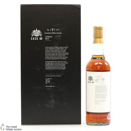 From the Scottish Folklore Series, this 3rd release 19-year-old was distilled at Laphroaig distillery on the 14th of February 2001 in a Chateau Leoville-Las Cases Bordeaux. Before being selected and bottled by Cask 88 at an ABV of 53.9%.