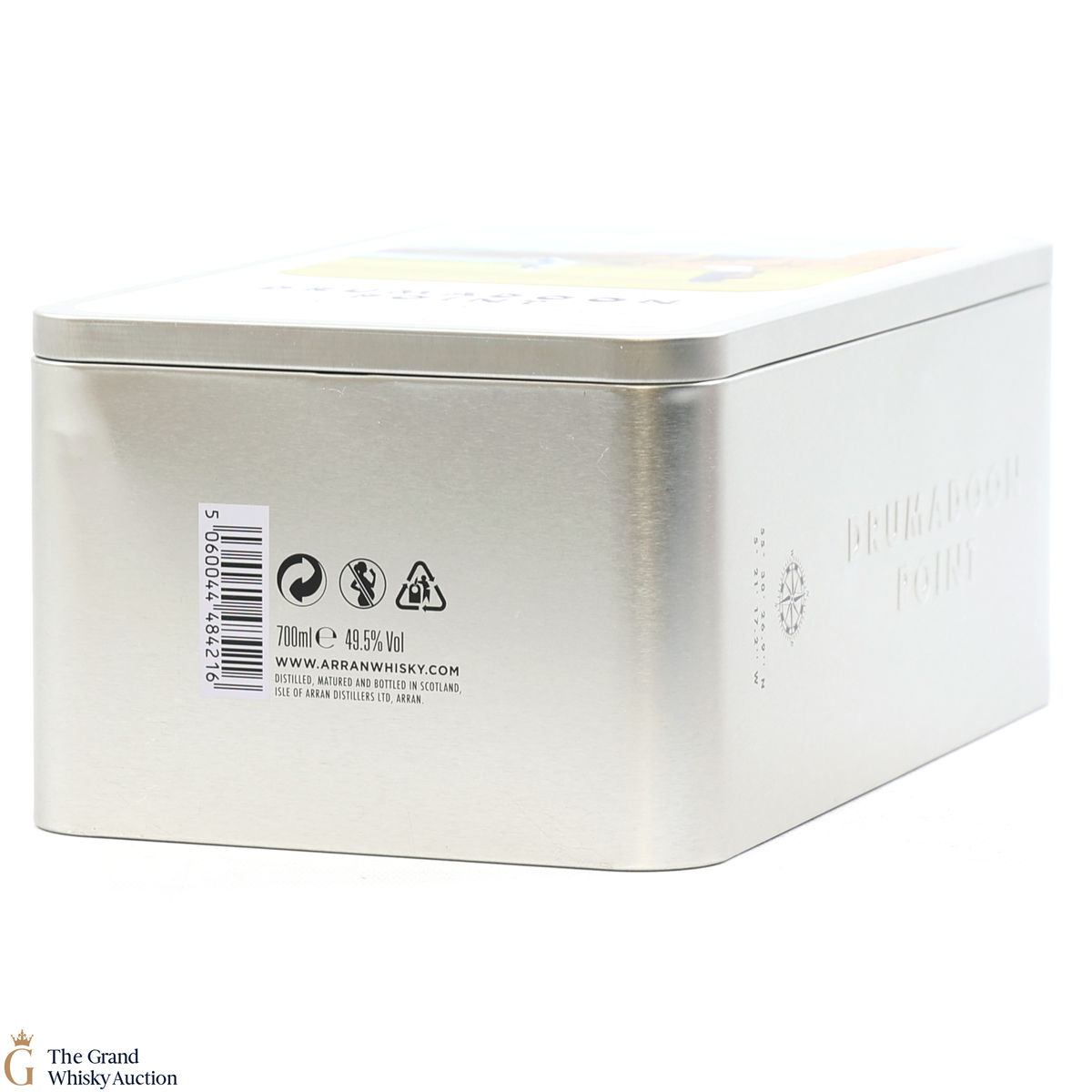 The presentation tin and the bottle label features beautiful views of Drumadoon point.
