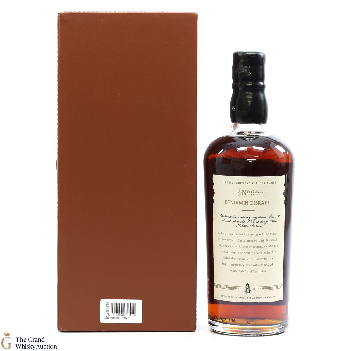 This single cask of Springbank was distilled in April 1996 and independently bottled in November of 2016. It is one of only 67 bottles that were released as part of the First Editions Authors series. Maturation took place in a sherry hogshead. This release features writer and former British Prime Minister, Benjamin Disraeli.