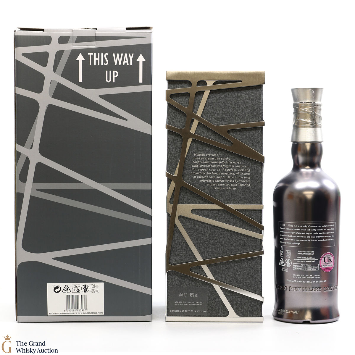 This guaranteed 25 Year old by Ardbeg has been produced from incredibly rare casks which were filled during some of the distillery's darkest day's. Known for its peated whiskies this is one of Ardbegs oldest aged whisky to join the core range. This expression proves that age cannot tame Ardbeg’s smoky power, but also that it can yield some of the most complex and majestic flavours ever from Ardbeg Distillery.