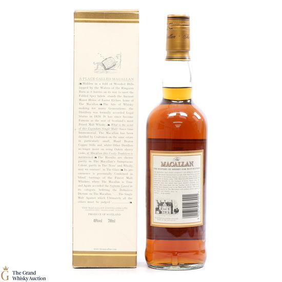 An old bottling of Macallan 10-year-old, which has been exclusively matured in sherry oak casks. Bottled in the early 2000's.