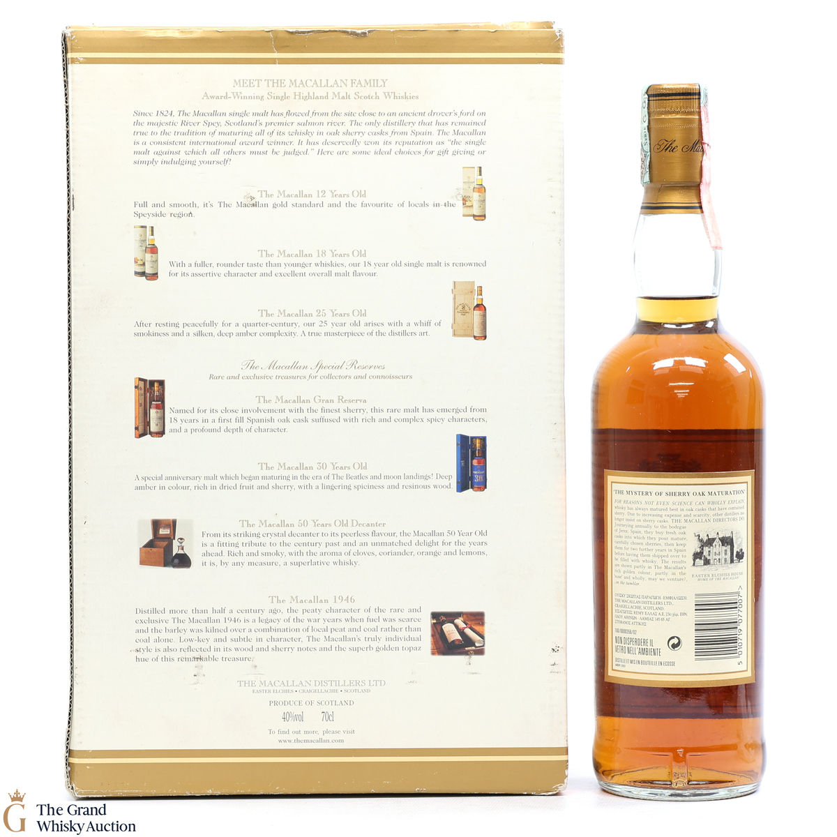 Due to the various ages of bottles and their seals, the condition of liquid is at the buyer's discretion and no claim can be lodged against failure/leakage in transit. Loss and breakage cover is available at 3% of the hammer price as standard. If the lot is not insured, no claim can be lodged against the courier or The Grand Whisky Auction for breakage or loss in transit.
