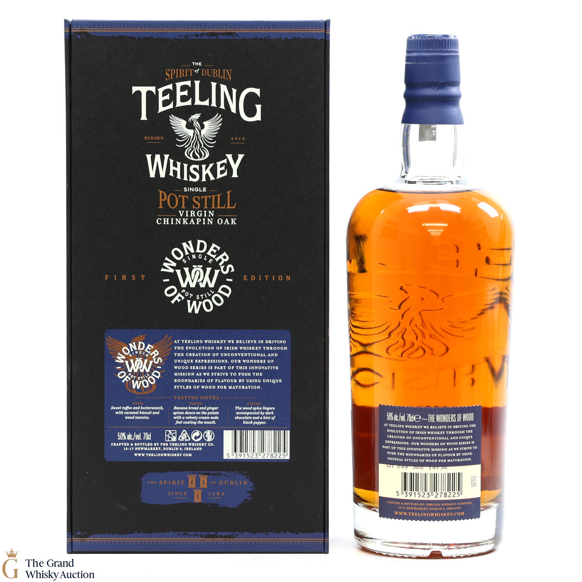 The first release in the Wonders of Wood bottlings; a single pot crafted from a recipe of 50% malted barley and 50% unmalted barley which has been triple distilled and fully matured in virgin Chinkapin American white oak casks.