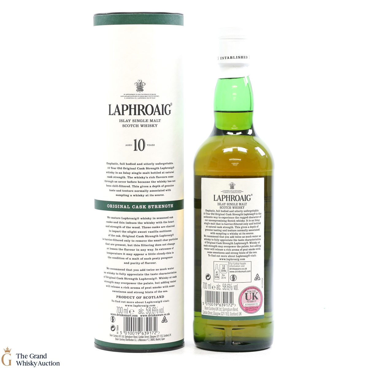 This original cask strength bottling of the medicinal 10 year old from Islay's bestselling distillery, Laphroaig. In making Laphroaig, malted barley is dried over a peat fire. The smoke from this peat, found only on Islay, gives Laphroaig its particularly rich flavour.
