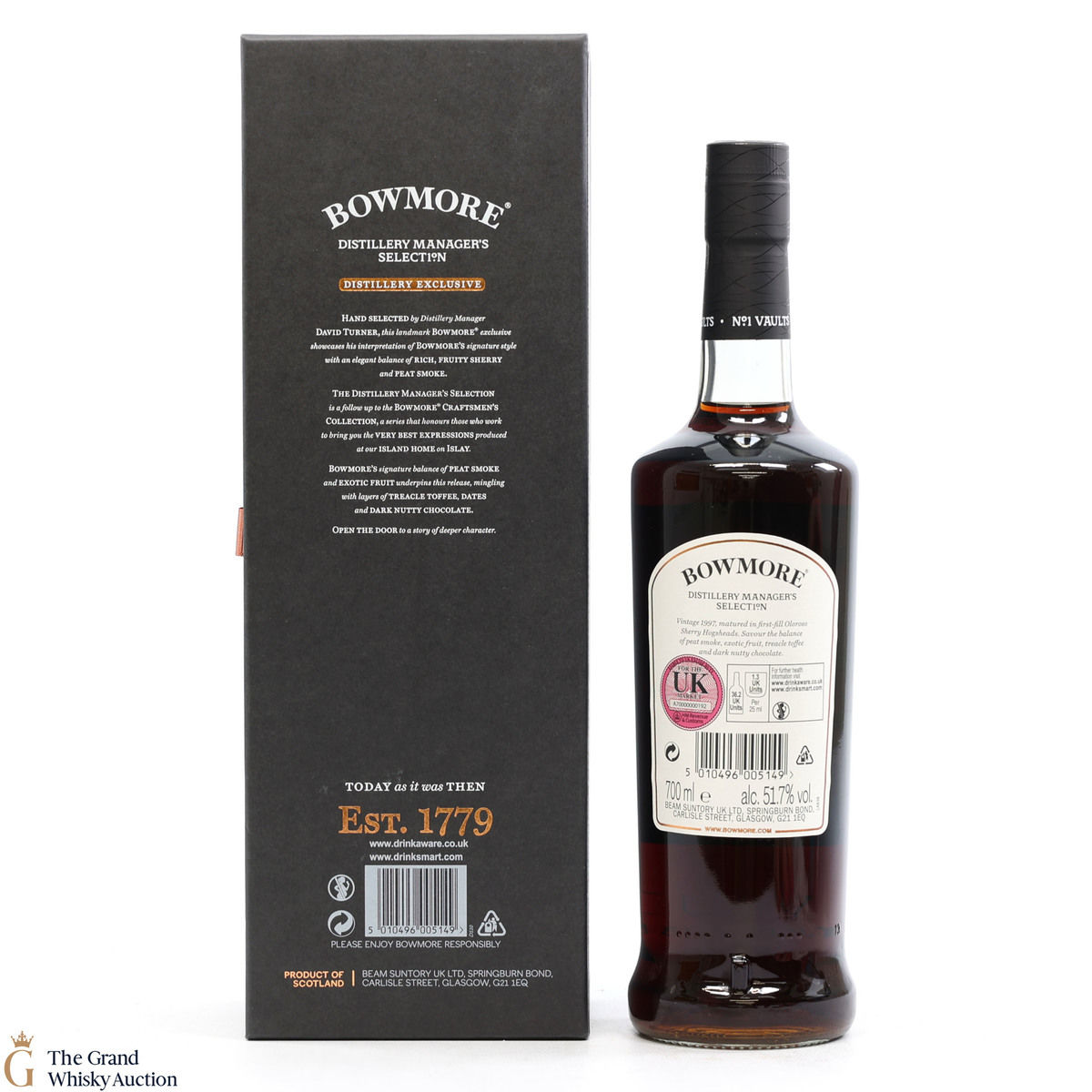 The Bowmore Distillery Manager's Selection is a follow up to the Bowmore Craftsmen's Collection.
