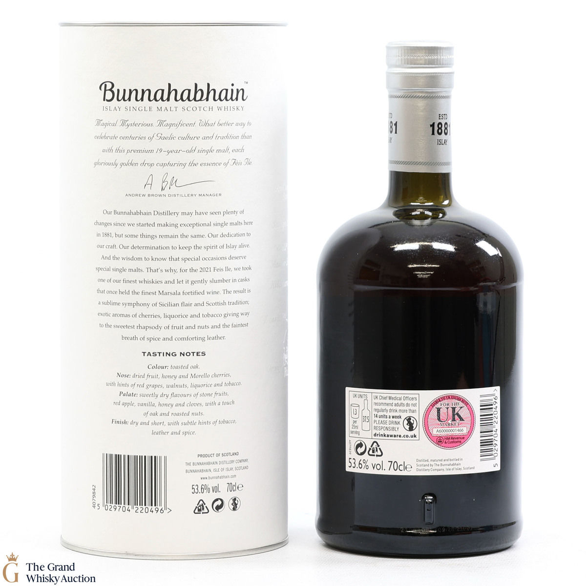 For Feis Ile 2021, Bunnahabhain Distillery released this unique bottling. Distilled back on the 8th of October 2001, this single malt was finished in a cask that once held Marsala fortified wine resulting in a combination of Sicilian flair and Scottish tradition. Bottled on the 19th of January 2021, this is one of only 1333 bottles produced.