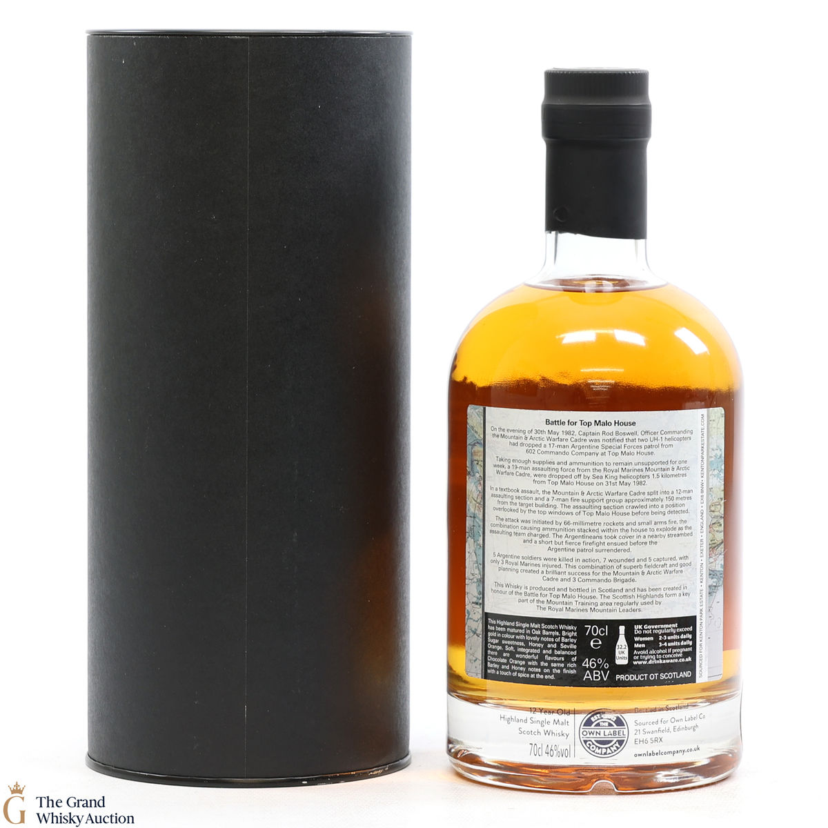 A 12-Year-old Highland Single Malt commemorates the battle of Top Malo House in 1983. Matured in oak barrels for 12 years before being bottled at 46% ABV.