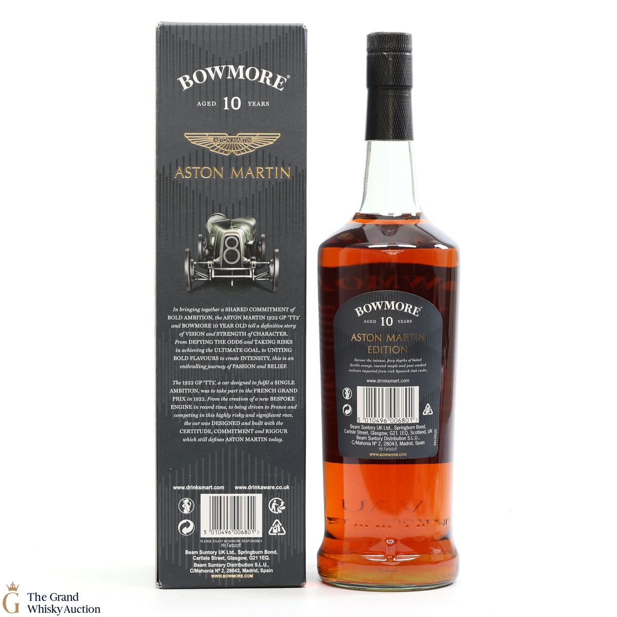 From the limited edition Bowmore x Aston Martin series, this is edition 4. The Bowmore 10-Year-Old is paired with the game-changing Aston Martin factory Team Car, the LM10, which first raced at Le Mans in 1932. This is a 1 Litre, 40%.