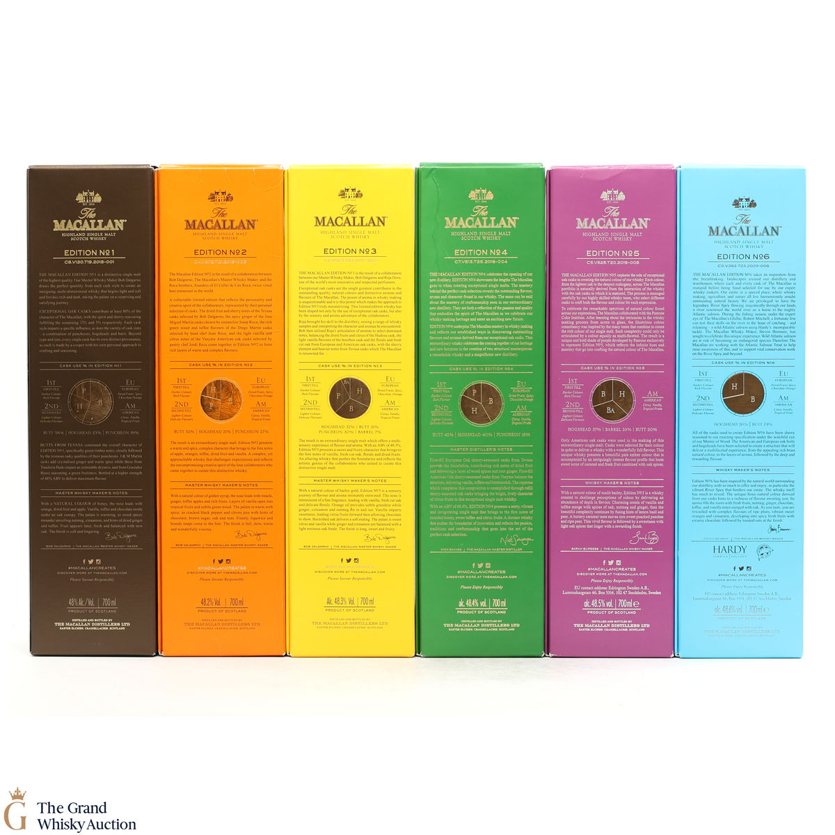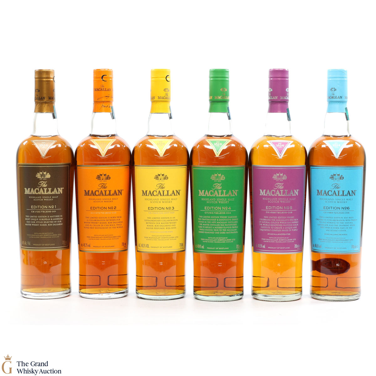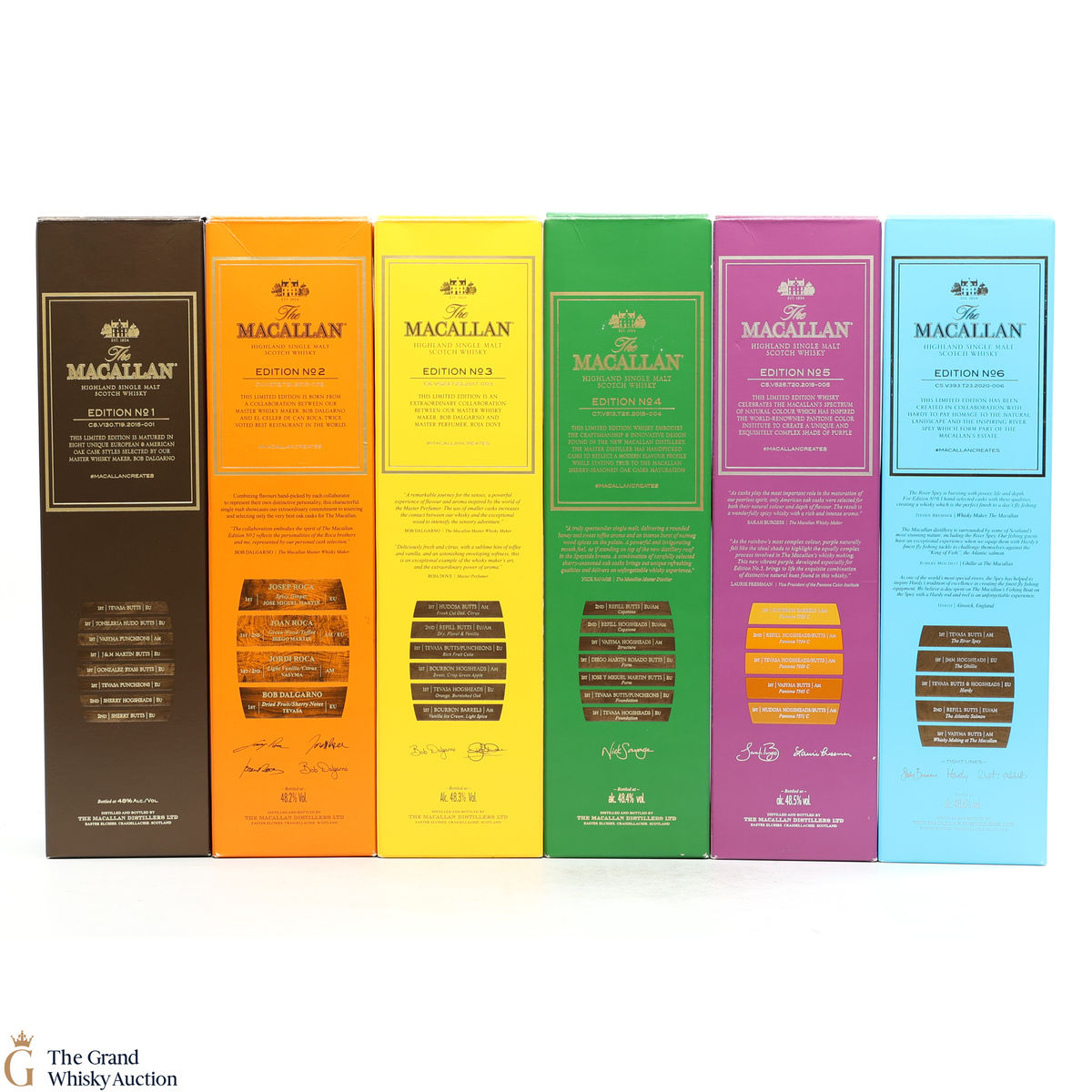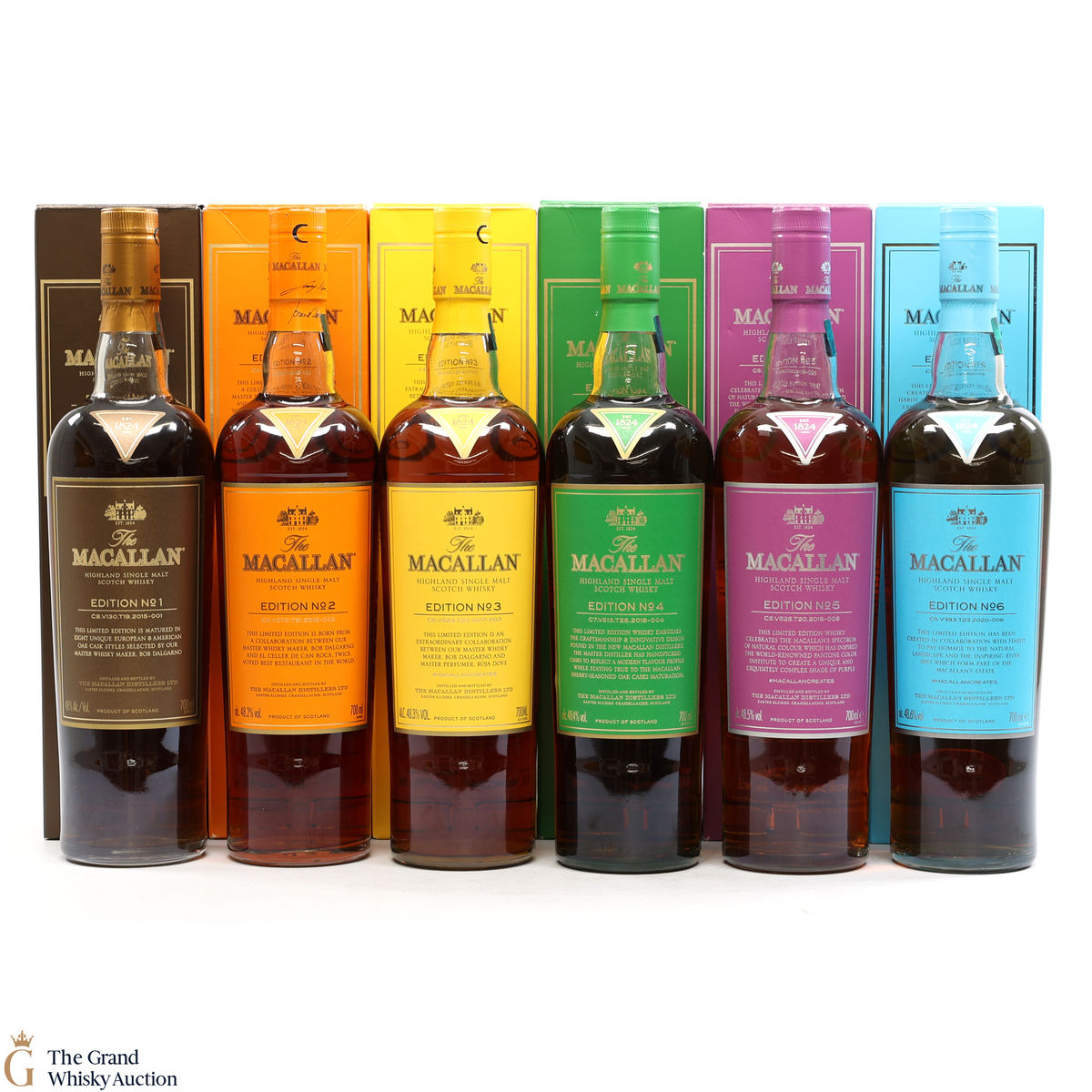 This lot brings together the Macallan Edition set, comprising of Edition No.1-6 in the annual limited edition series 2015-2020.