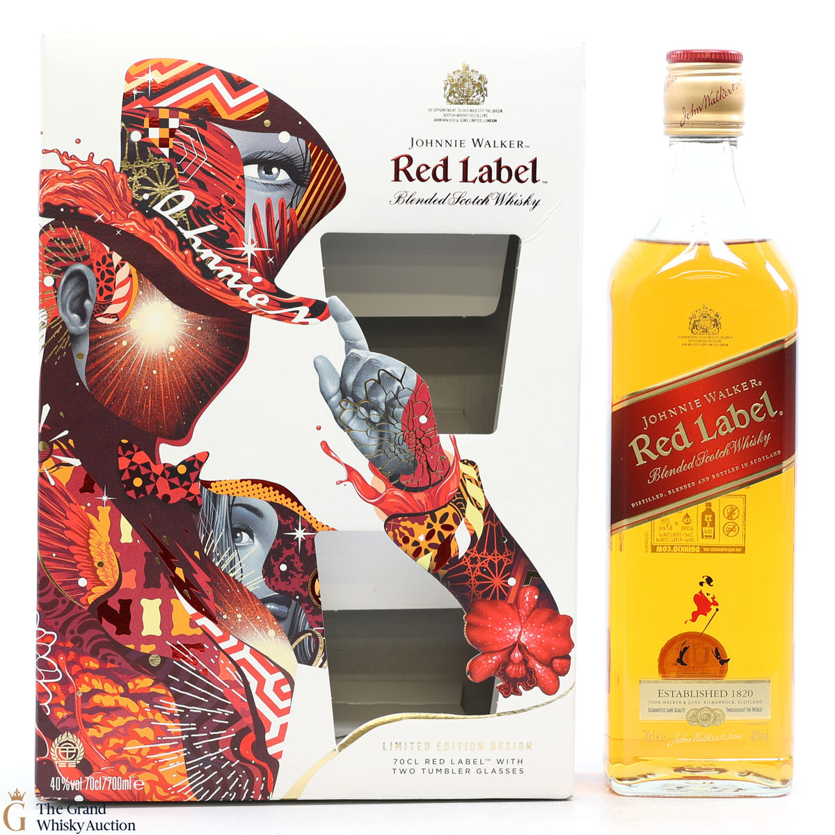 This limited edition gift set contains 1 x 70cl of Johnnie Walker - Red Label and 2 x tumbler glasses.