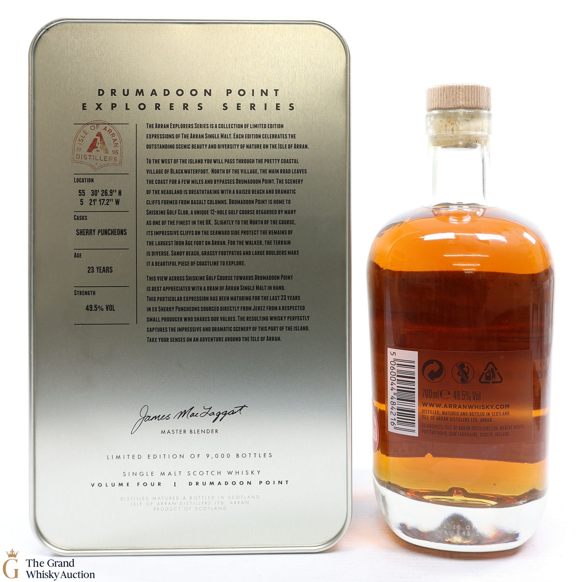 The presentation tin and the bottle label features beautiful views of Drumadoon point.