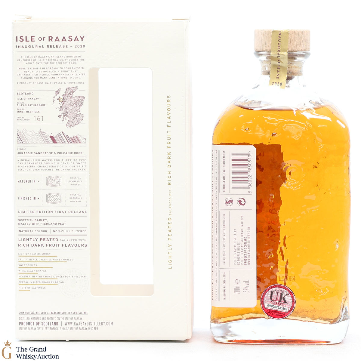 The inaugural release from the Isle of Raasay distillery is a limited edition release matured in first-fill American oak, and finished in 21 exclusive first fill Bordeaux red wine casks. They have created an elegant, lightly peated (15-20 Peat or Phenol Parts Per Million). Bottled at 52% and in a unique glass bottle which captures the island's geology.