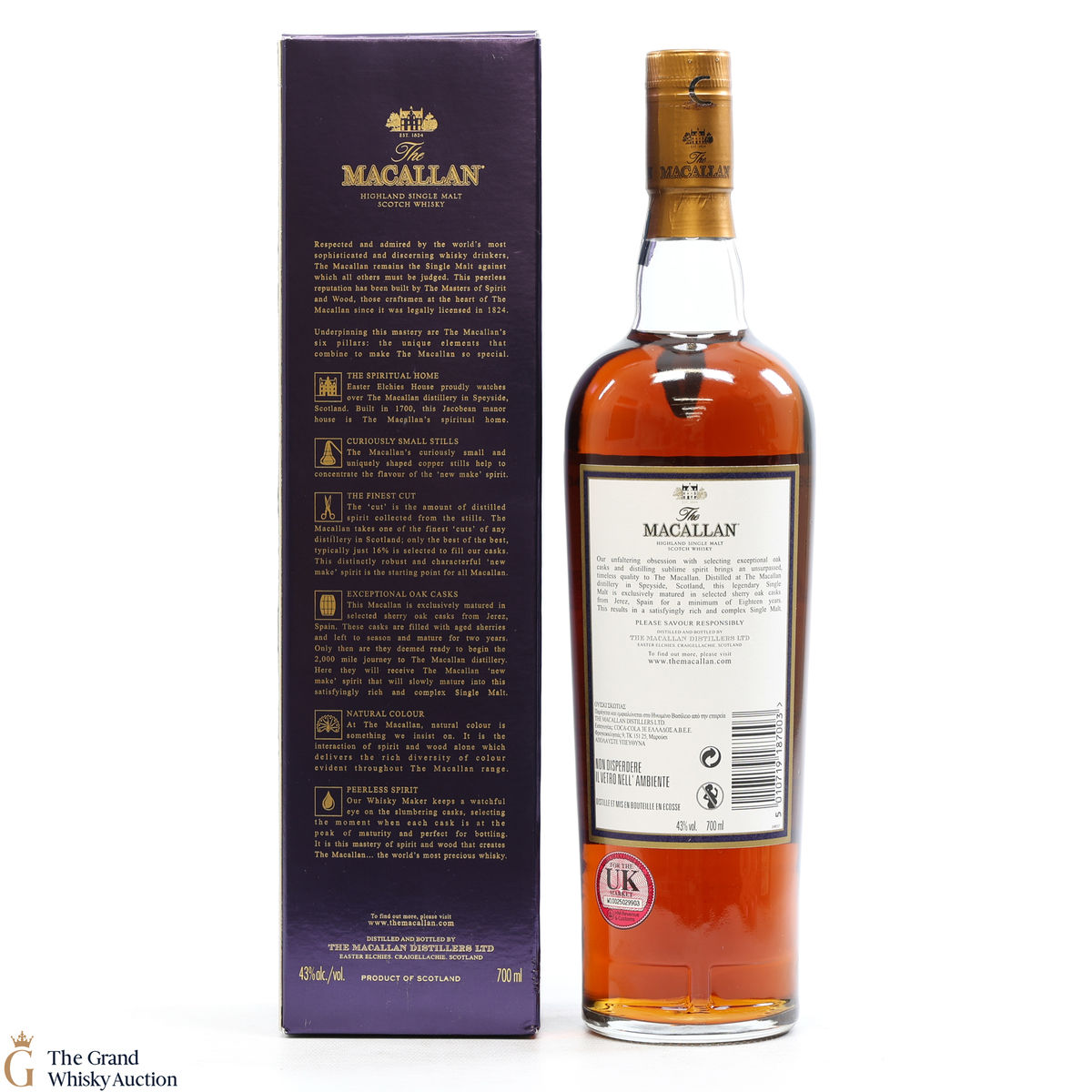 This annual release of The Macallan's popular 18 Year Old Sherry Oak is matured exclusively in sherry seasoned casks, built from both Spanish and American oak, providing a beautifully dark flavour with rich aromas.