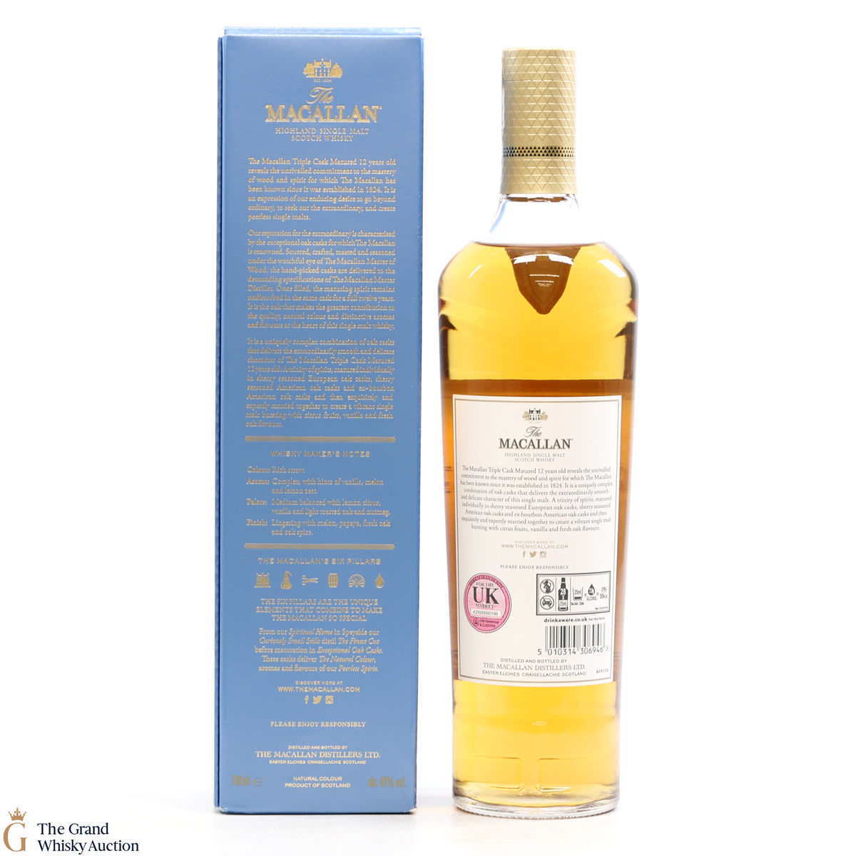 The 12 year old single malt was matured for 12 years and drawn from a combination of European sherry seasoned casks, American sherry seasoned casks and American ex-bourbon casks. It is part of Macallan's Triple Cask range which was launched in 2018, taking the place of the Fine Oak range.