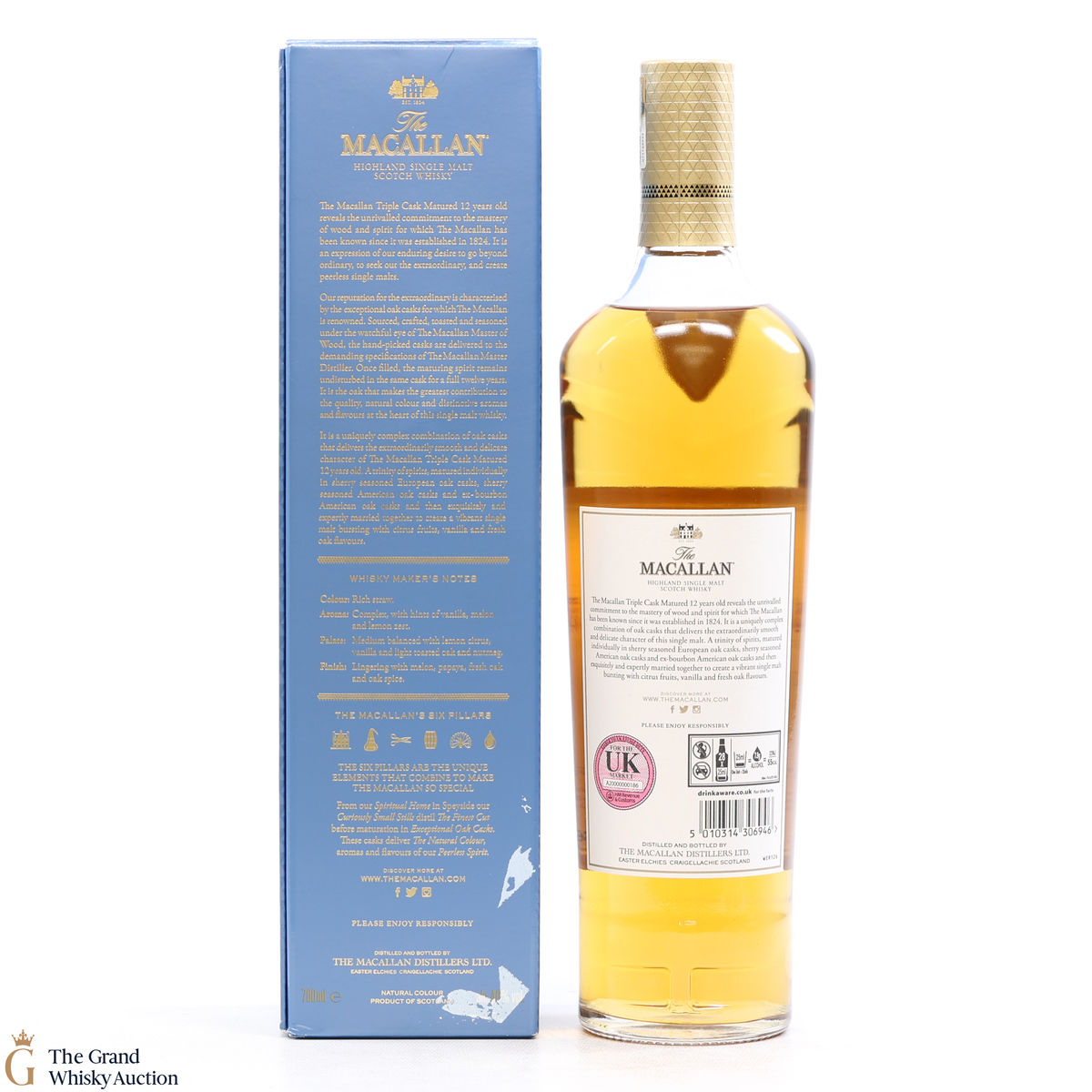 The 12 year old single malt was matured for 12 years and drawn from a combination of European sherry seasoned casks, American sherry seasoned casks and American ex-bourbon casks. It is part of Macallan's Triple Cask range which was launched in 2018, taking the place of the Fine Oak range.