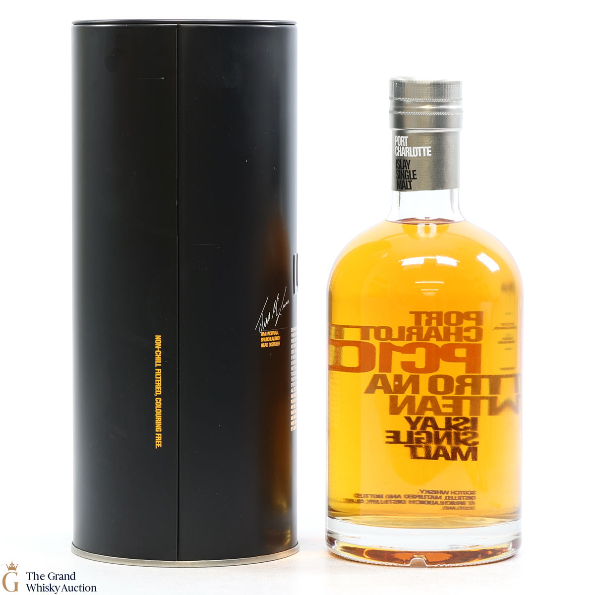 Port Charlotte PC10, produced by Bruichladdich Distillery, is a heavily peated spirit. It was the first release of heavily peated Port Charlotte and was produced in 2001 from some of the first spirits to be produced after the distillery's reopening. The single malt was bottled at 10 years old and was limited to 6000 bottles.