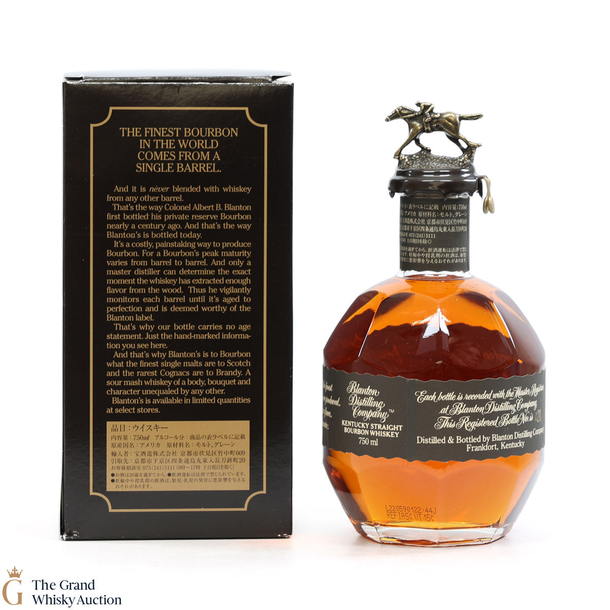 PLEASE NOTE: The wax seal on Blanton's bottles are prone to cracking in transit due to their design. Therefore, as stated in our T&C’s, we do not and will not accept liability should the seal be breached, broken, split or leak in transit. Additionally, please know due to the design of the internal cardboard packaging that surrounds the top of the bottles, it too may be torn. By bidding on this lot you have understood this to be true. Insurance is for complete breakage or loss in transit only.
