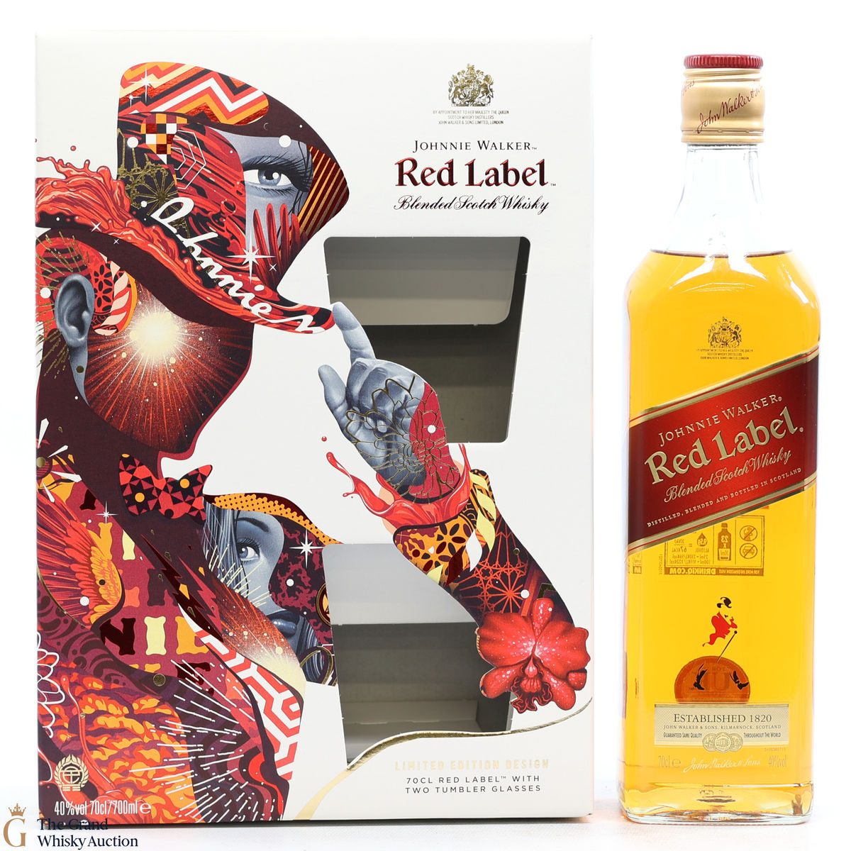 This limited edition gift set contains 1 x 70cl of Johnnie Walker - Red Label and 2 x tumbler glasses.