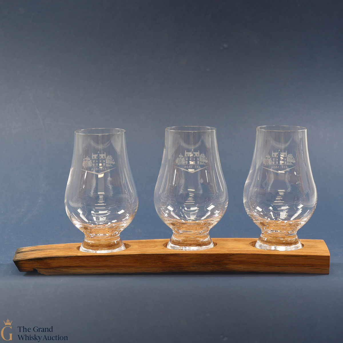 This decorative wooden plinth from Macallan with 3 x branded glass, branded water jug and mixer.