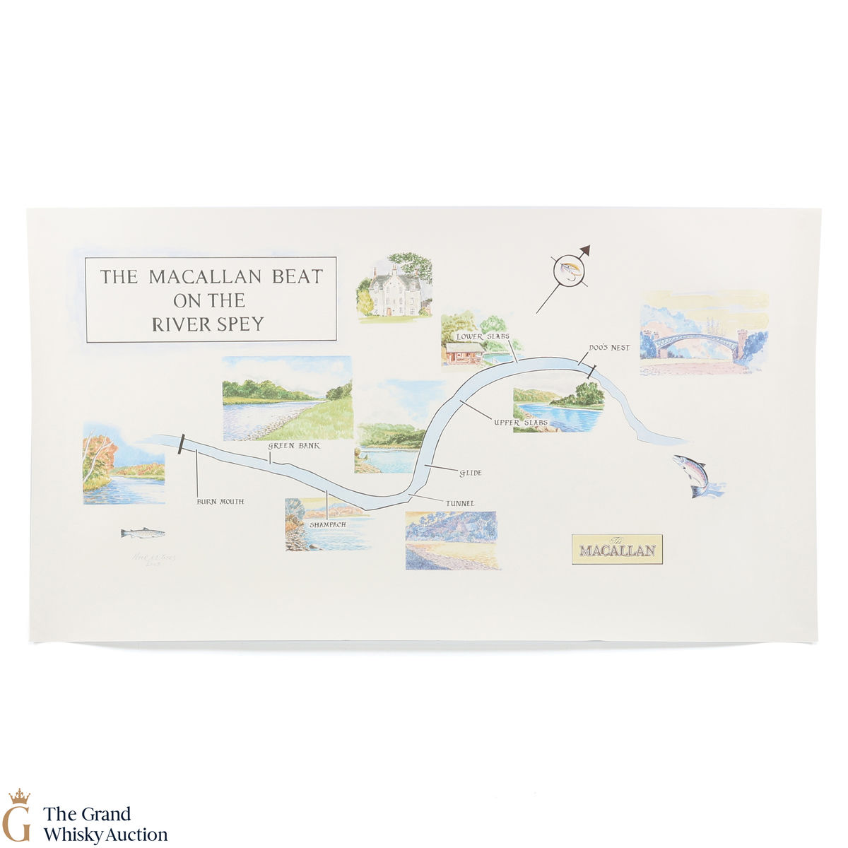 This lot includes a watercolour-painted map of the Macallan beat on the River Spey.