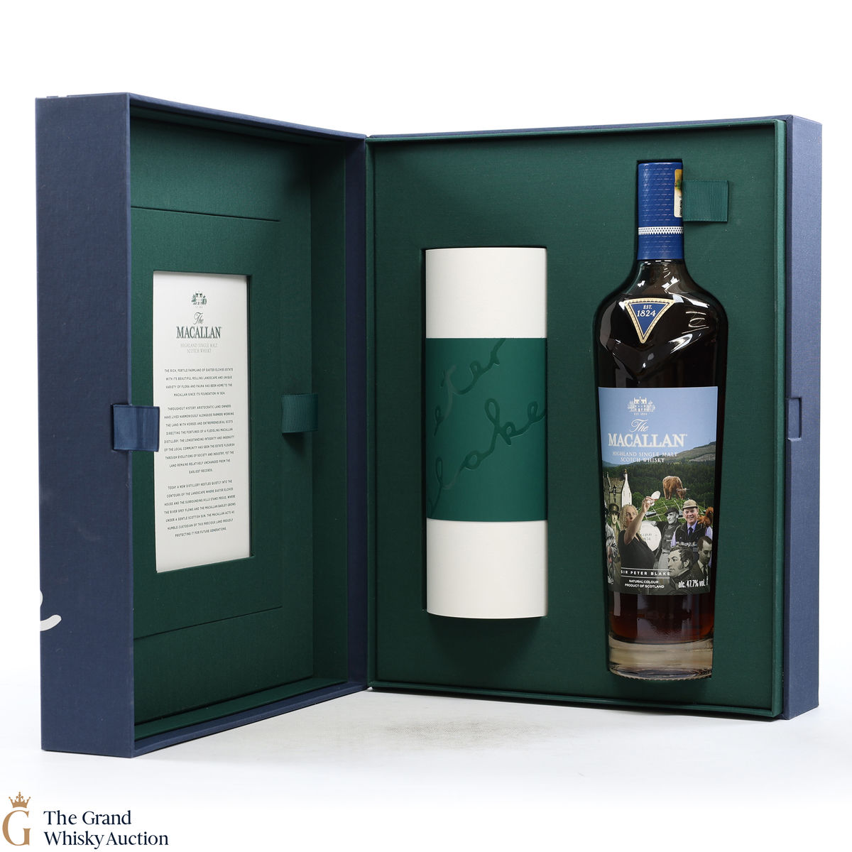 Along with this unique bottle of whisky is a scroll of artwork showing Sir Peter Blake's distinct style and a certificate detailing the history and heritage on which Sir Peter's art was based. There is also a piece of tracing paper which provides information on each character from The Macallan's history that Sir Peter chose to include in his art.