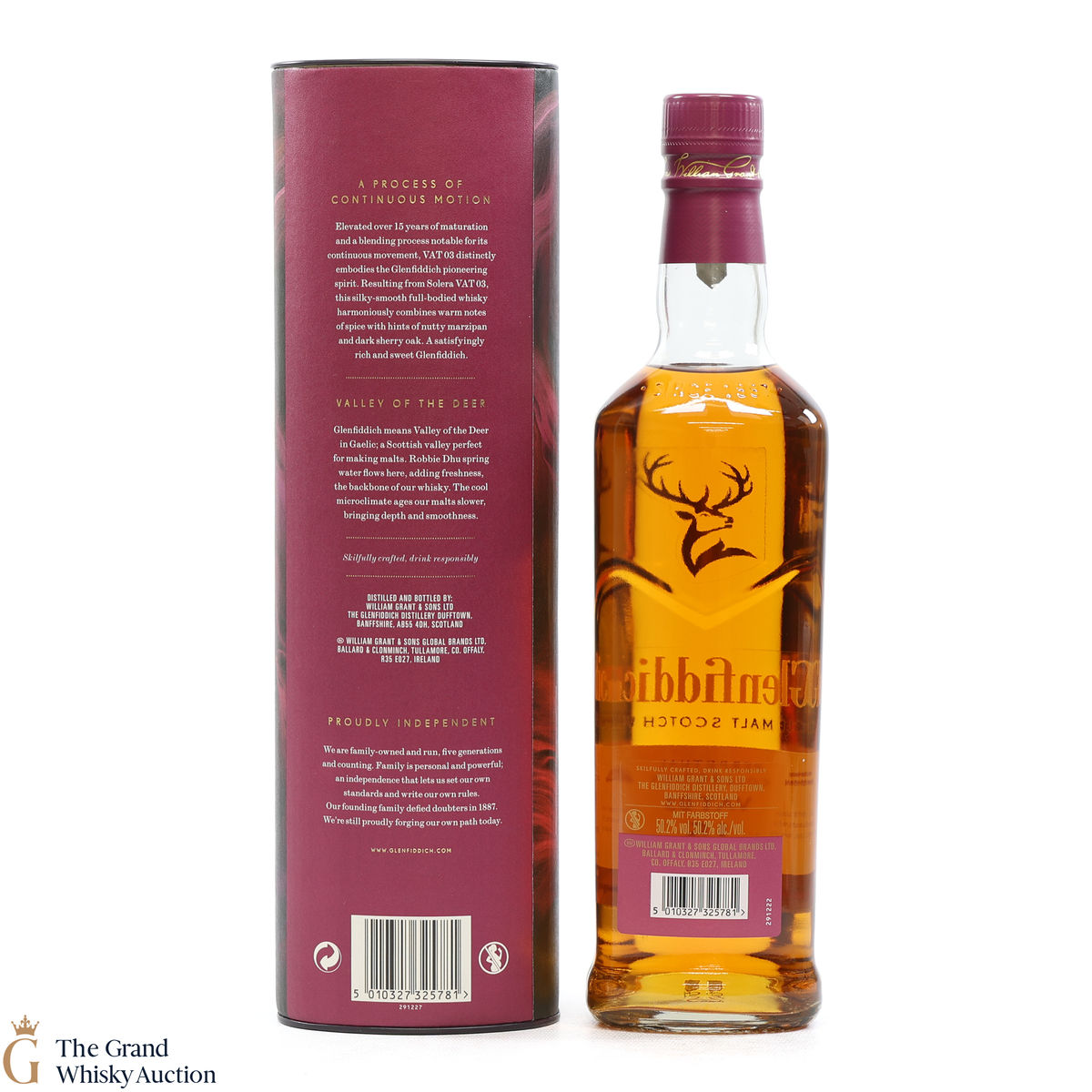 Distilled at Glenfiddich distillery this 15 year old VAT 3 was c arefully aged in European Oak sherry, new oak and ex-bourbon casks for over 15 years, before harmonising in the unique Solera VAT 3.