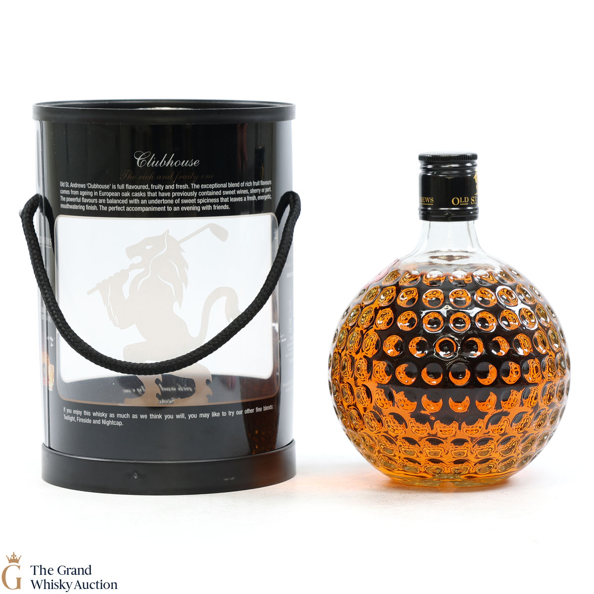 Old St Andrews Clubhouse, a blended whisky in the bottle form of a golf ball-shaped decanter.